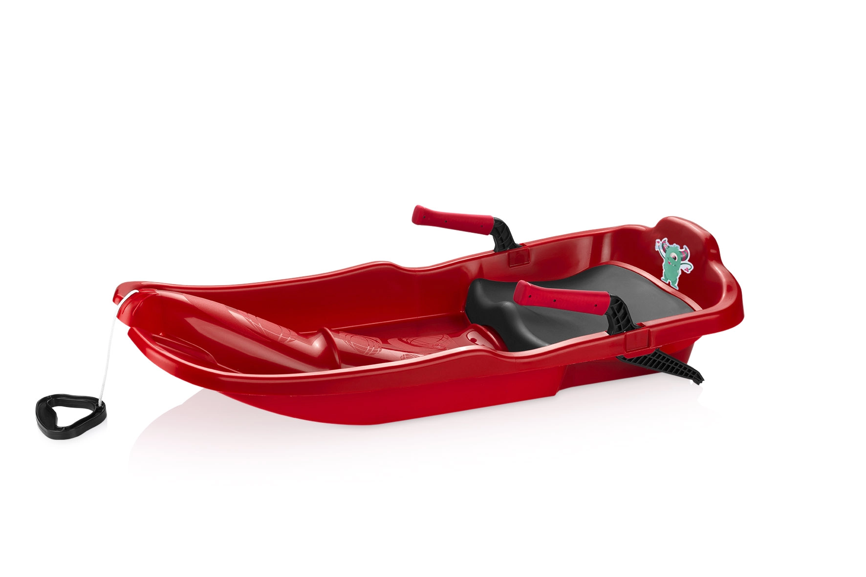 Tvirta virvė su rankena leidžia lengvai tempti rogutes į kalną ir patogiai manevruoti lygumoje.