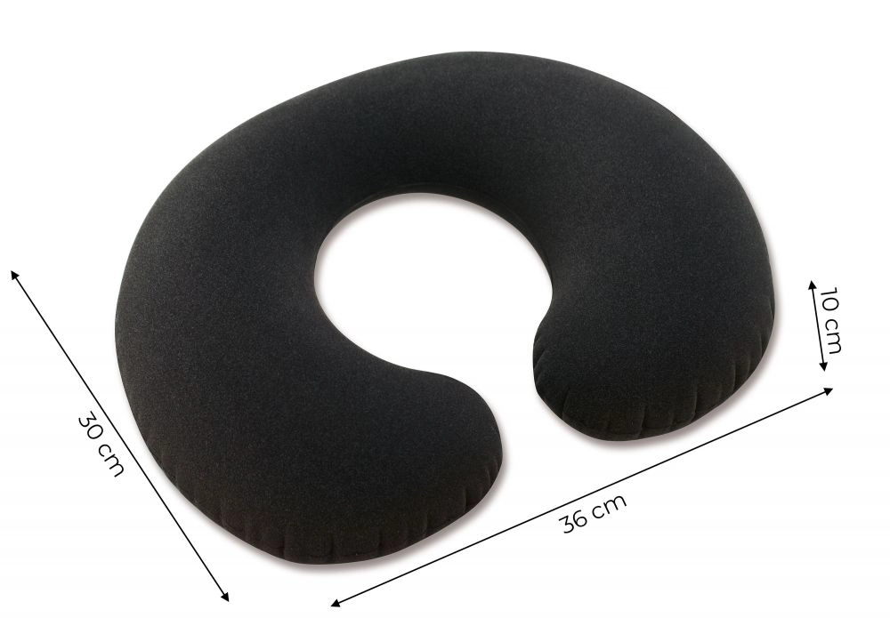 Konstrukcija iš patvaraus PVC, derinama su švelniu veliūriniu paviršiumi, užtikrina malonų kontaktą su oda ir didesnį atsparumą dilimui. Pripūsto pagalvėlio matmenys 36 × 30 × 10 cm, o išleidus orą jį lengvai susilankstysite į rankinę ar rankinį bagažą.