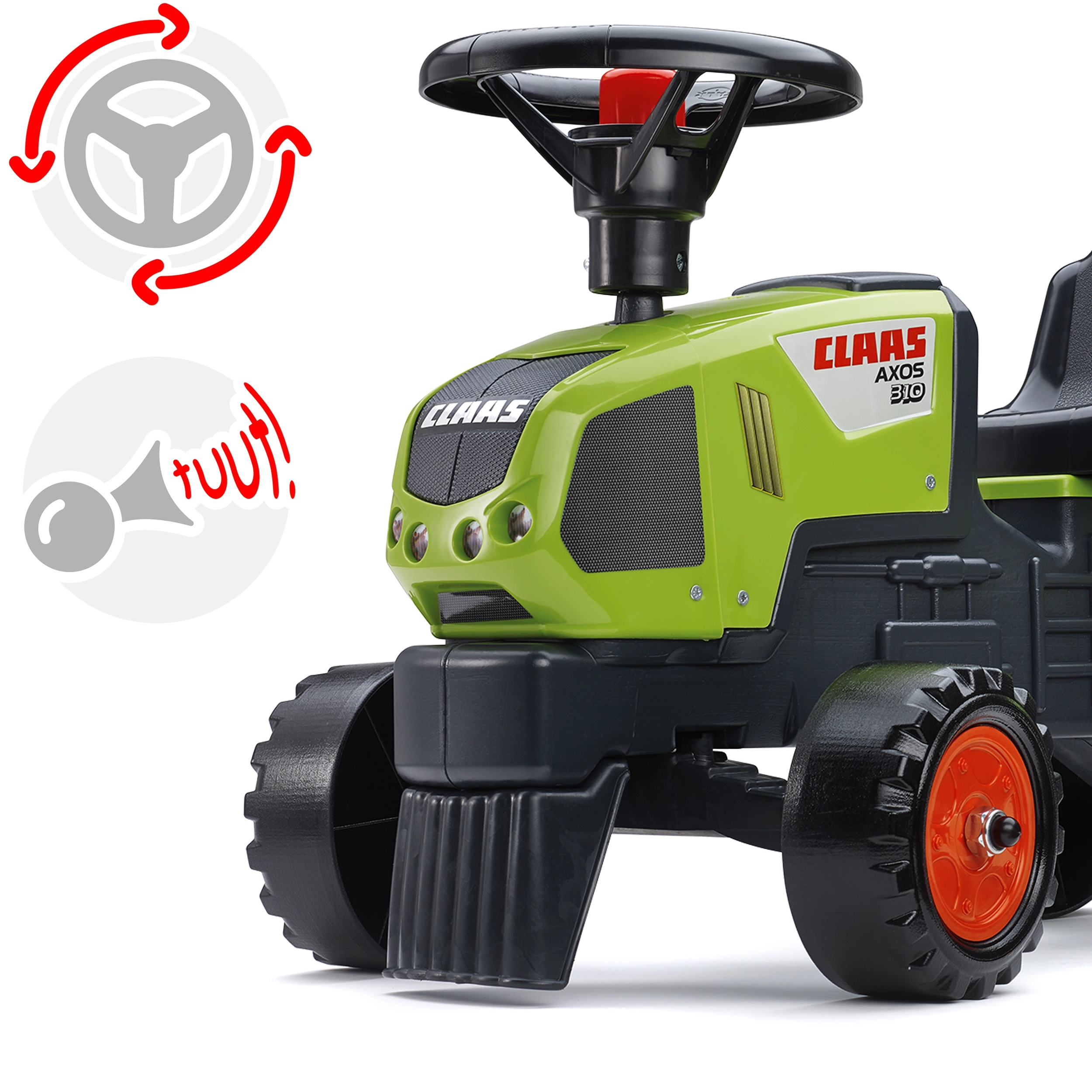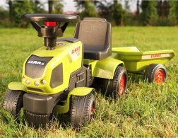 Šis tvirtas važiuojamasis traktorius mažiausiesiems sužavi realistine CLAAS išvaizda ir lengvu valdymu. Dėl nuimamos priekabos vaikai gali vežioti savo žaislus ar smulkmenas iš dirbtuvių ar sodo, o vairas su signalu dar labiau pagyvina ūkininko žaidimus.