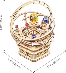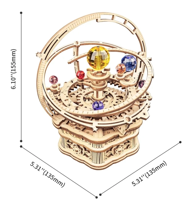 Šis mechaninis 3D modelis – idealus smalsiems kūrėjams, astronomijos gerbėjams ir dizaino akcentų mylėtojams. Konstravimo metu lavinate vaizduotę, dėmesį detalėms ir loginį mąstymą. Dėka įspūdingos melodijos ir dekoratyvios išvaizdos, modelis taps ryškiu bet kurio interjero akcentu.