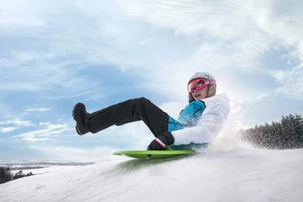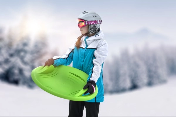 Patvarus plastikas atsparus žiemos sąlygoms ir kartu išlieka lengvas, kad būtų paprasta nešti į kalną. Lėkštė tinkama vaikams nuo 3 metų ir suaugusiesiems, tad pramogą gali mėgautis visa šeima.