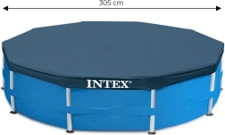 INTEX 305 cm dengiamasis tentas – idealus priedas bet kuriam kiemo rėminiam baseinui. Jis neleidžia į vandenį patekti lapams, vabzdžiams ir dulkėms, mažina garavimą ir prisideda prie geresnės šilumos izoliacijos. Patvarus vinilas 110 g/m² gramatuote sukurtas naudoti lauke ir lengvai atlaiko oro sąlygas.