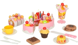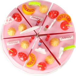 Linksmas rožinis pjaustomo torto rinkinys pradžiugins mažus konditerius nuo 3 metų. Tortas iš 6 dalių sujungtas lipniomis juostelėmis (Velcro) ir gali būti pjaustomas plastikiniu peiliu. Gausi vaisių, papuošimų ir įrankių įvairovė skatina vaizduotę, vaidmenų žaidimus ir smulkiąją motoriką.