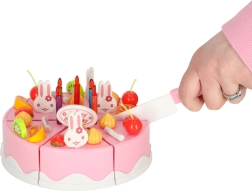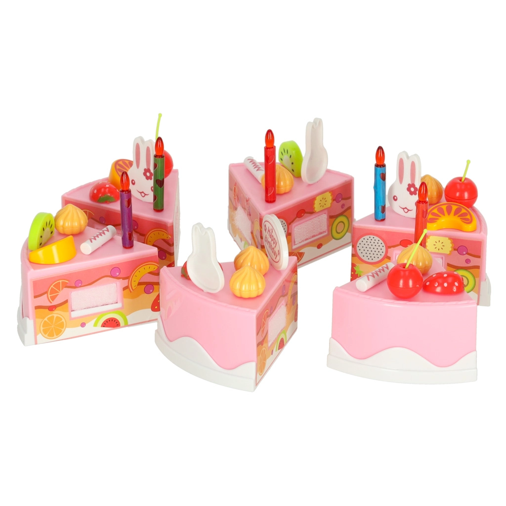 Atraskite gimtadienio šventės magiją kiekvieną dieną. Vaikišką rožinį tortą iš 6 dalių su užrašu „Happy Birthday“ lengva išardyti ir vėl surinkti dėl lipnių juostelių (Velcro). Mažieji virėjai jį papuoš pagal nuotaiką – žvakutėmis, triušiukais ir spalvotais vaisiais – ir patieks ant lėkštučių.
