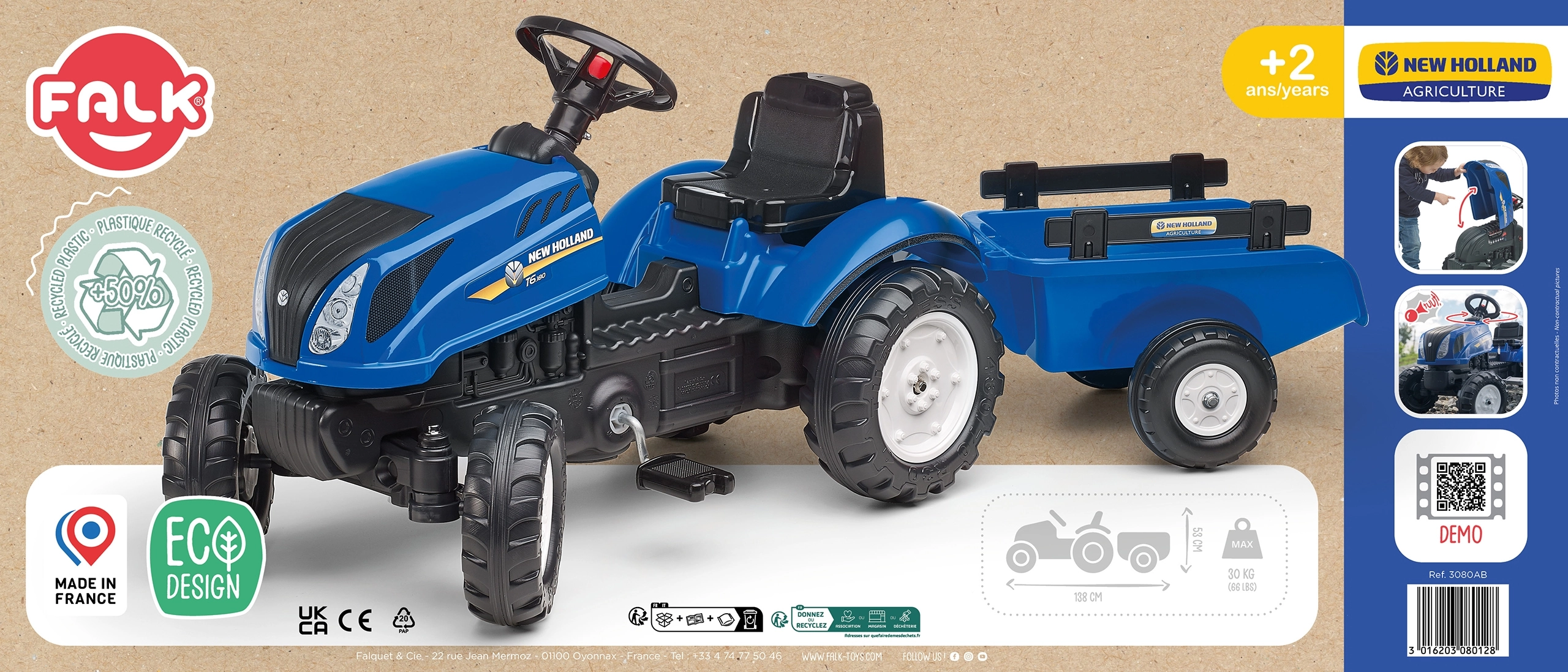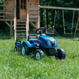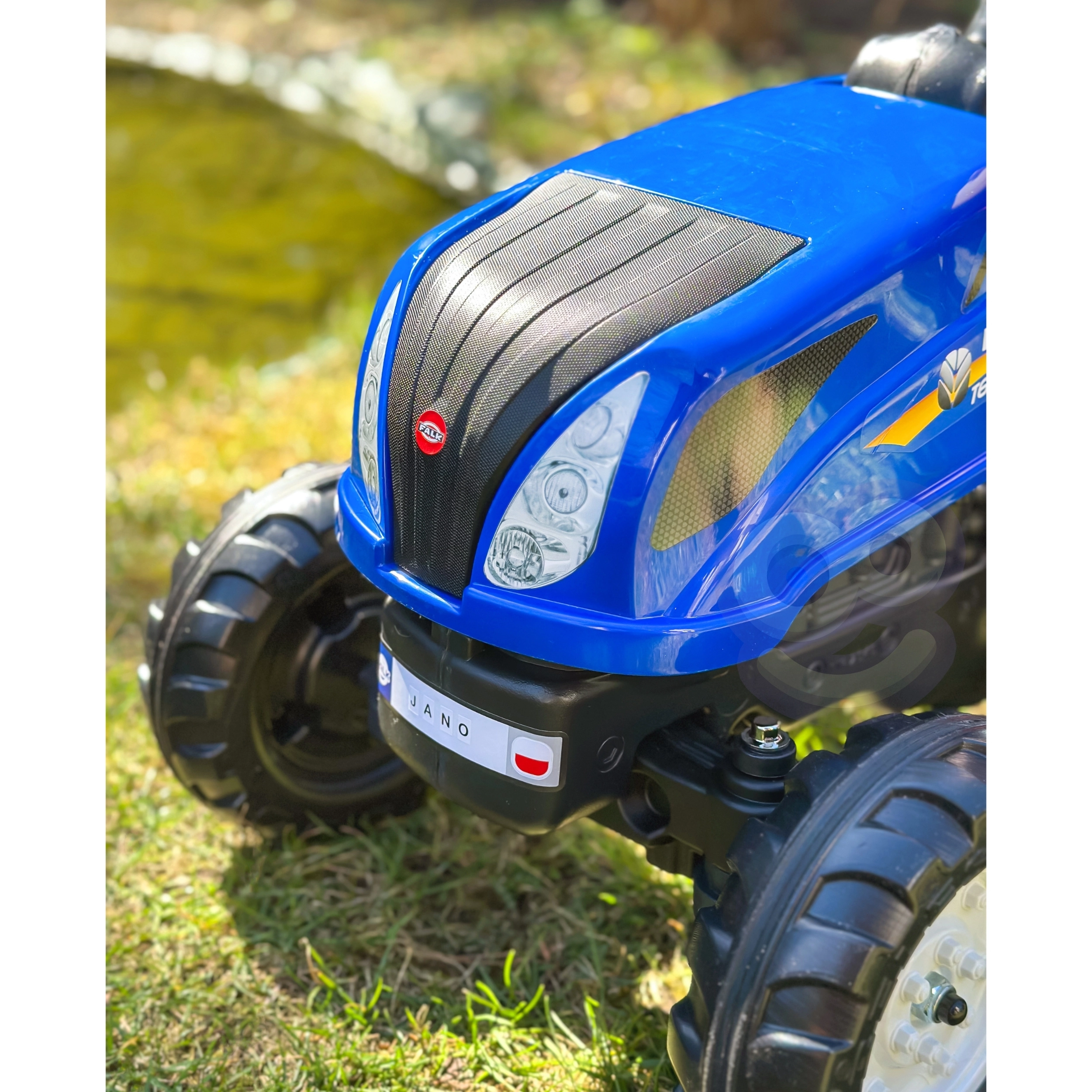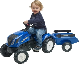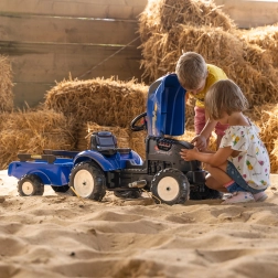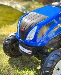 Minamas traktorius, įkvėptas tikrų NEW HOLLAND mašinų, suteikia vaikams realistišką vairavimo patirtį. Dėl atidaromo kapoto su variklio imitacija mažieji vairuotojai gali tyrinėti „vidurius“, o grandinė pavara galinei ašiai užtikrina sklandų važiavimą. Nuimama priekaba idealiai tinka žaislams ar smulkiems kroviniams vežioti sode.