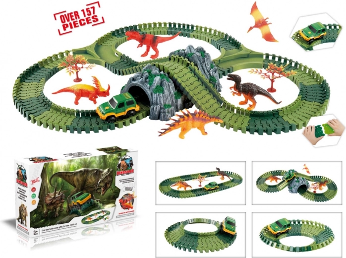 Ši kintama trasa su dinozaurais atneša vaikams veiksmo kupiną priešistorės pasaulį tiesiai į jų kambarį. Dėl lanksčių dalių bėgius galima lengvai perstatyti ir kurti naujas trasas su tuneliu, posūkiais ir tiltais. Komplekte esantis šviečiantis automobiliukas važiuoja sudaryta trasa ir pagyvina kiekvieną kelionę.
