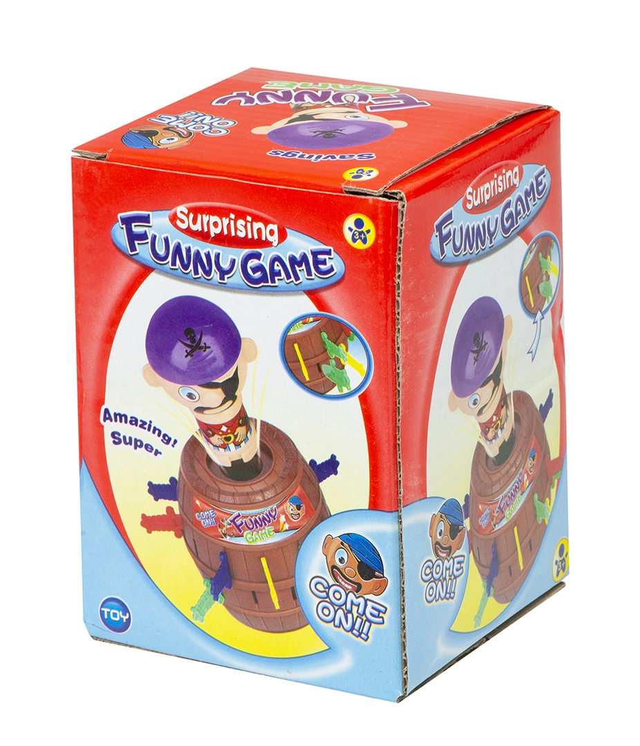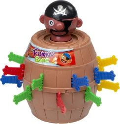 Populiarus piratų žaidimas vaikams ir suaugusiesiems. Pastatykite piratą į statinę, išdalinkite kardus ir paeiliui kiškite juos į angas. Viena iš jų sukels staigmeną – piratas iššoks ir prajuokins visą kompaniją. Žaidimas puikiai tinka šeimos vakarams ir vaikų šventėms, skatina pastabumą ir komandinę komunikaciją.