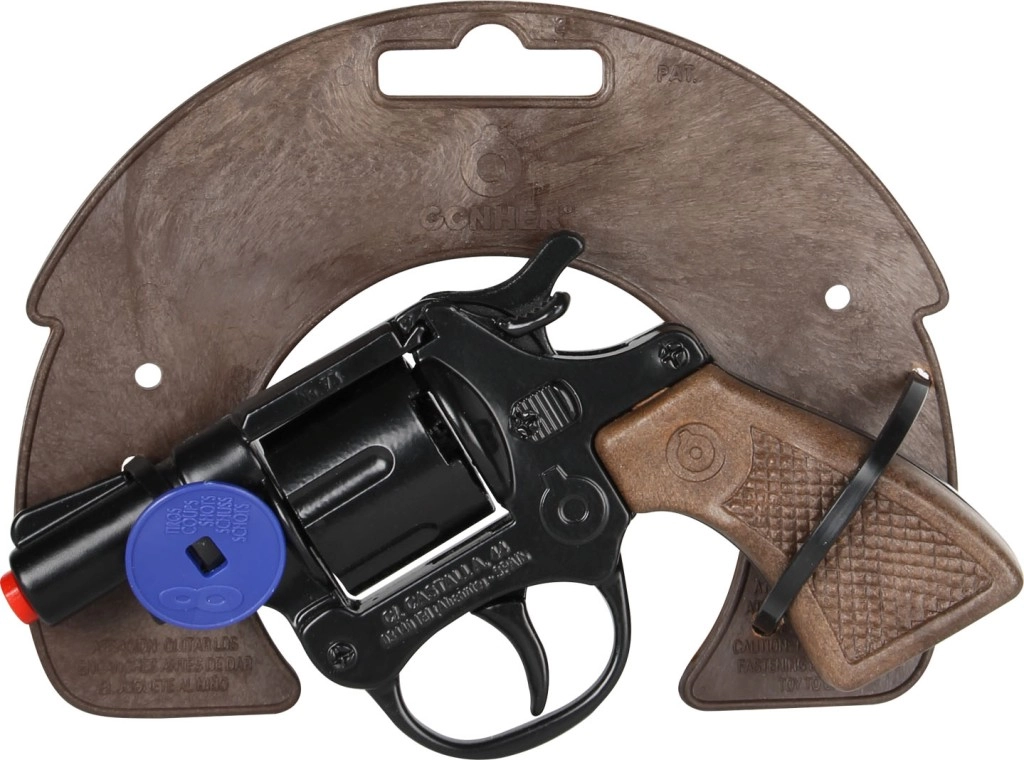 Suteikite vaikams autentišką žaidimo patirtį su kapsulių policijos revolveriu. Dėl tvirto metalinio korpuso ir juodos apdailos jis atrodo realistiškai ir tuo pačiu tinka saugiam vaikų žaidimui. Aštuonių šūvių būgnelis leidžia iššauti daugiau kartų nereikalaujant dažno pertaisymo.