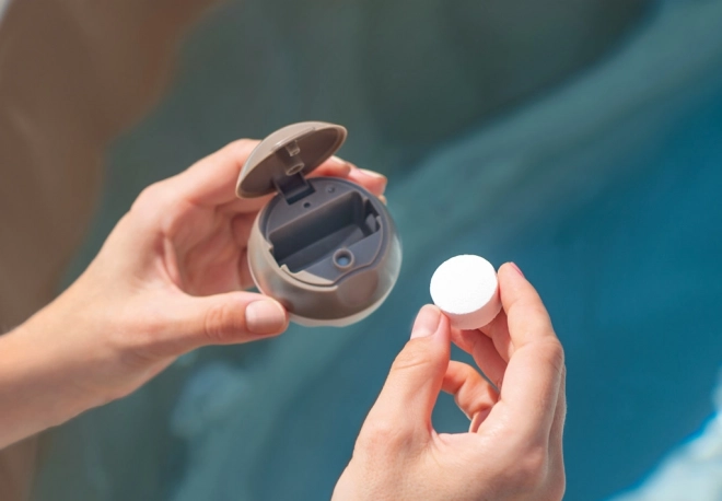Praktiškas plūduriuojantis chemijos dozatorius saugiai išleidžia dezinfekuojančias tabletes į vandenį. Pagamintas iš patvaraus polipropileno, yra nekorozinis ir tinka visoms sūkurinėms vonioms. Skirtas tabletėms iki 3,8 cm skersmens.
