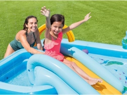 Paverskite kiemą linksmu vandens pasauliu su INTEX žaidimų centru. Plati čiuožykla su minkštu pagrindu užtikrina švelnų ir saugų nusileidimą, o seklus brastas ir didesnis baseinėlis suteiks gaivos karštomis dienomis. Integruotas fontanas su vandens srauto reguliavimu suteikia žaidimams naują dimensiją.