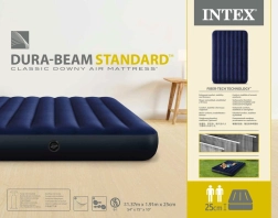 Pripučiamas čiužinys INTEX su Dura-Beam Fiber technologija užtikrina sveiką miegą dėl anatomiškos stuburo padėties poilsio metu. Čiužinys pagamintas iš tvirto PVC, o viršutinė dalis padengta vandeniui atspariu veliūriniu audiniu. Naudojant Bostono vožtuvą čiužinį galima greitai išleisti ir lengvai laikyti.