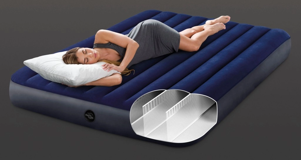 INTEX prekės ženklo pripučiamas čiužinys – puikus pasirinkimas patogiam dviejų asmenų miegui. Dėl 203x152x25 cm matmenų ir tvirto PVC, padengto vandeniui atspariu veliūru, jis atitinka visus komforto reikalavimus. Mėlyna spalva papildo elegantišką išvaizdą. JAV patentuota Dura-Beam Fiber technologija užtikrina ne tik ilgaamžiškumą, bet ir išskirtinį komfortą miego metu.