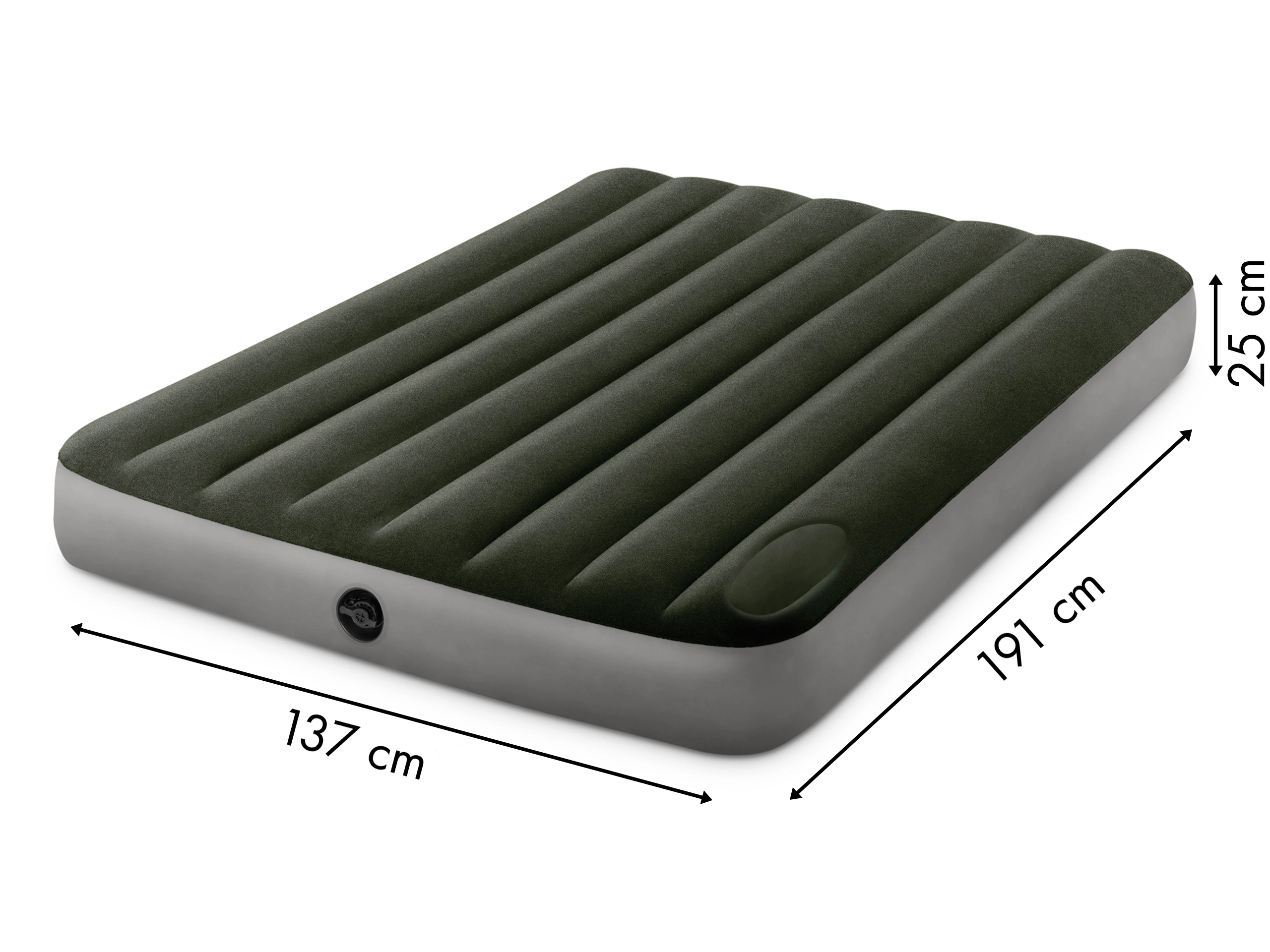 Praktiška pripučiama dvigulė matracė, kurios matmenys 191 × 137 × 25 cm, idealiai tinka namams ir stovyklavimui. Siūlo malonų veliūrinį paviršių, integruotą kojinį siurblį pripūtimui bet kur ir Dura‑Beam Fiber technologiją stabiliai atramai ir ilgaamžiškumui.