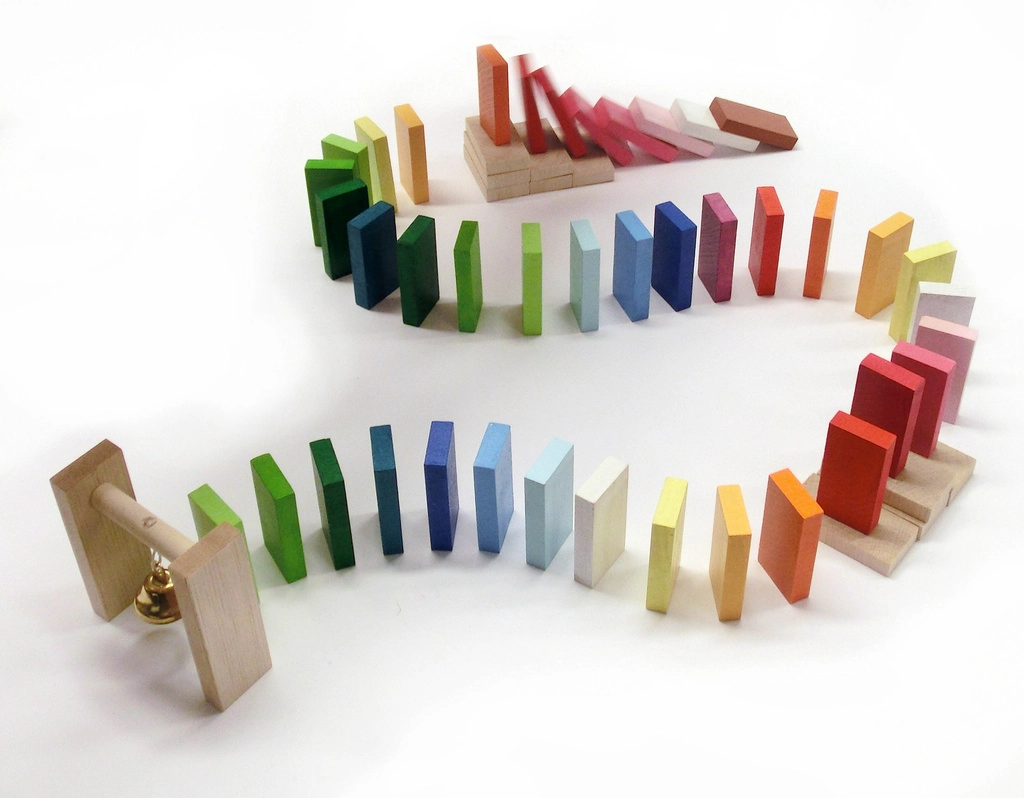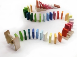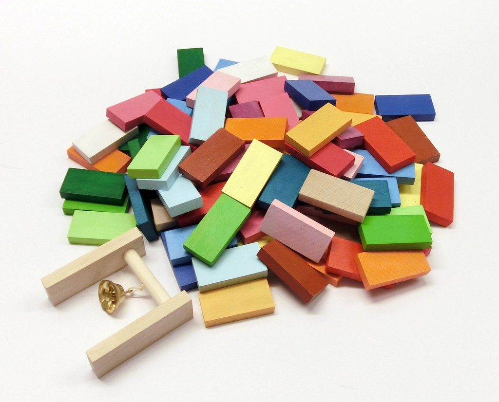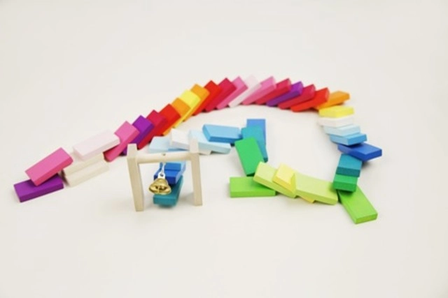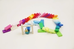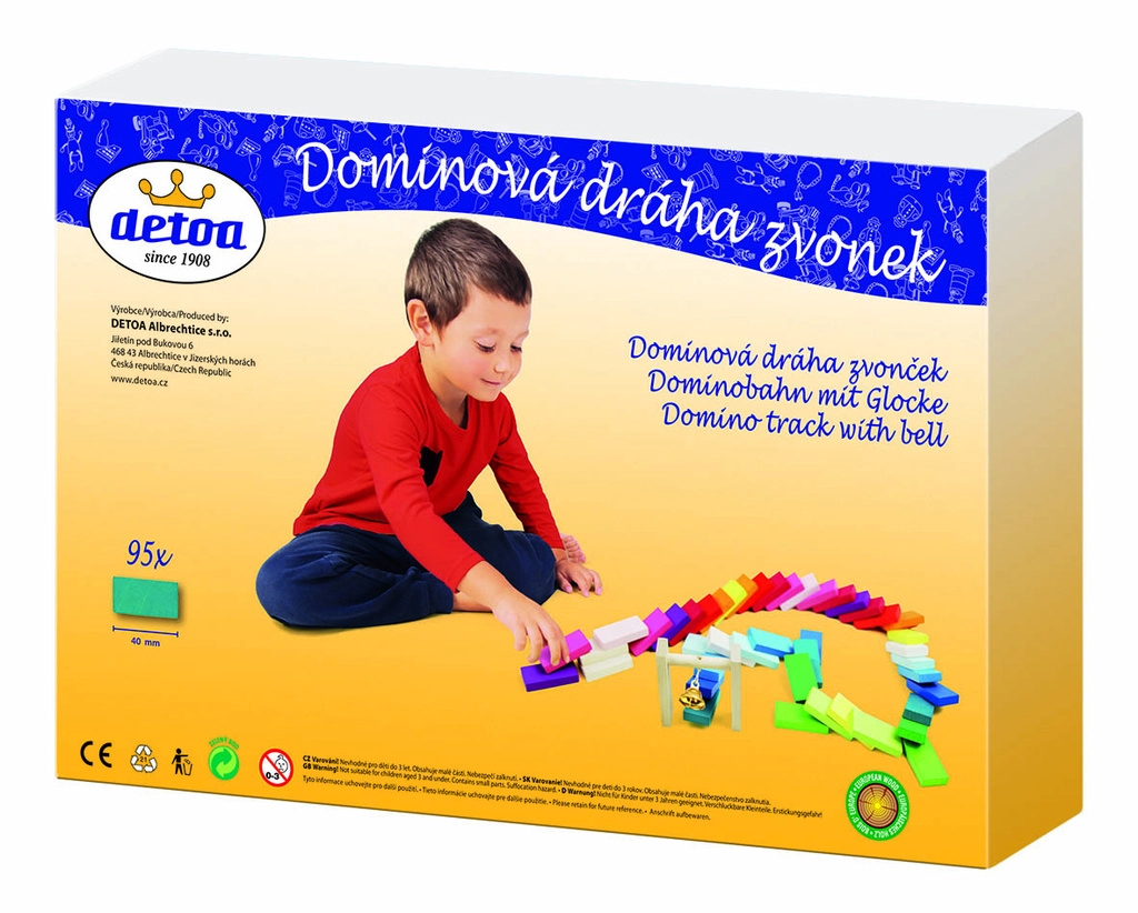Atsineškite namo begalinį smagumą su Detoa dominos trasa su varpeliu! Šis kūrybinis rinkinys, sudarytas iš 95 spalvingų kaladėlių, puikiai tinka visiems mažiesiems statytojams. Kuriant savo trasas ir stebint domino griūties efektus, lavinama vaikų kantrybė ir loginis mąstymas.