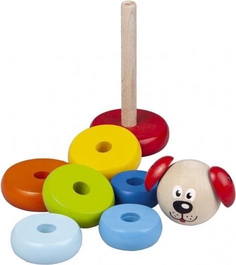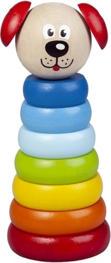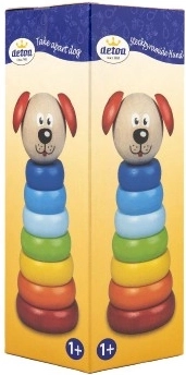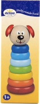 Piramidė Šuniukas Detoa iš medinių detalių skatina smulkiosios motorikos ir vaizduotės lavinimą vaikams nuo 1 metų. Pagaminta pagal griežtus ES saugos standartus.