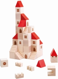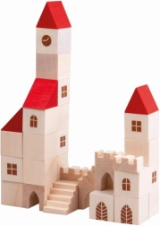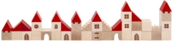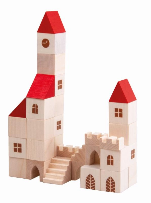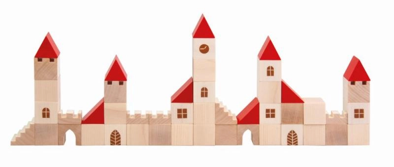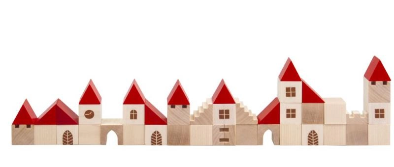 Ši medinė konstravimo rinkinio dėžutė turi 100 detalių įvairių formų ir dydžių, leidžiančių vaikams kurti savo mažą miestelį. Dėl spalvingo dizaino su raudonais stogeliais ir natūraliu medžiu šis rinkinys yra ne tik gražus, bet ir visiškai funkcionalus vaizduotę skatinančiam žaidimui. Padeda lavinti smulkiąją motoriką ir erdvinį suvokimą vaikams.