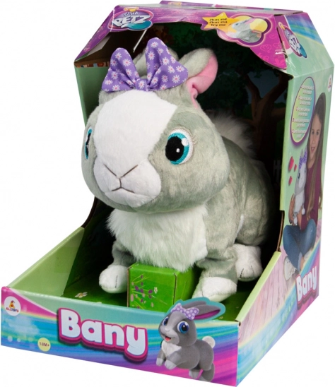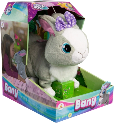 Interaktyvus pliušinis triušiukas BANY – mielas palydovas, kuris reaguoja į garsus, švelniai judasi ir krutina ausytes, o vaikus džiugina minkštu apkabinimu. Dėl paprasto valdymo balsu suteikia valandas pramogų ir mokymosi, yra tinkamas nuo 18 mėnesių ir veikia su 3× AA baterijomis.