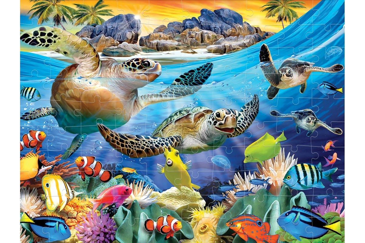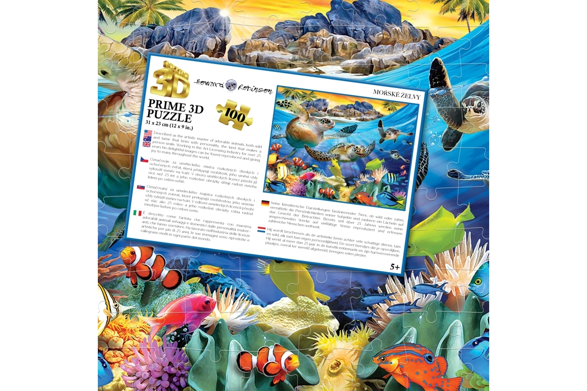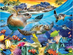 Atraskite erdvinio dėliojimo žavesį su 3D dėlione „Vėžlių paplūdimys“. Specialus optinis efektas suteikia paveikslui gilumo, todėl kai kurie personažai ar objektai atrodo tolimesni nei esantys priekyje. Dėliodami vaikai lavina smulkiąją motoriką, kantrybę ir dėmesį detalėms, o kartu patiria džiaugsmą užbaigus paveikslą.