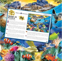 Mėgaukitės pramoga su vaikų dėlione, turinčia 3D optinį efektą, kuris sukuria gylio įspūdį ir atgaivina vėžlių paplūdimio motyvą. Idealu vaikams nuo 3 metų, lavina susikaupimą, smulkiąją motoriką ir džiaugsmą dėliojant. Kompaktiškas dydis sudėjus apie 31 × 23 cm.