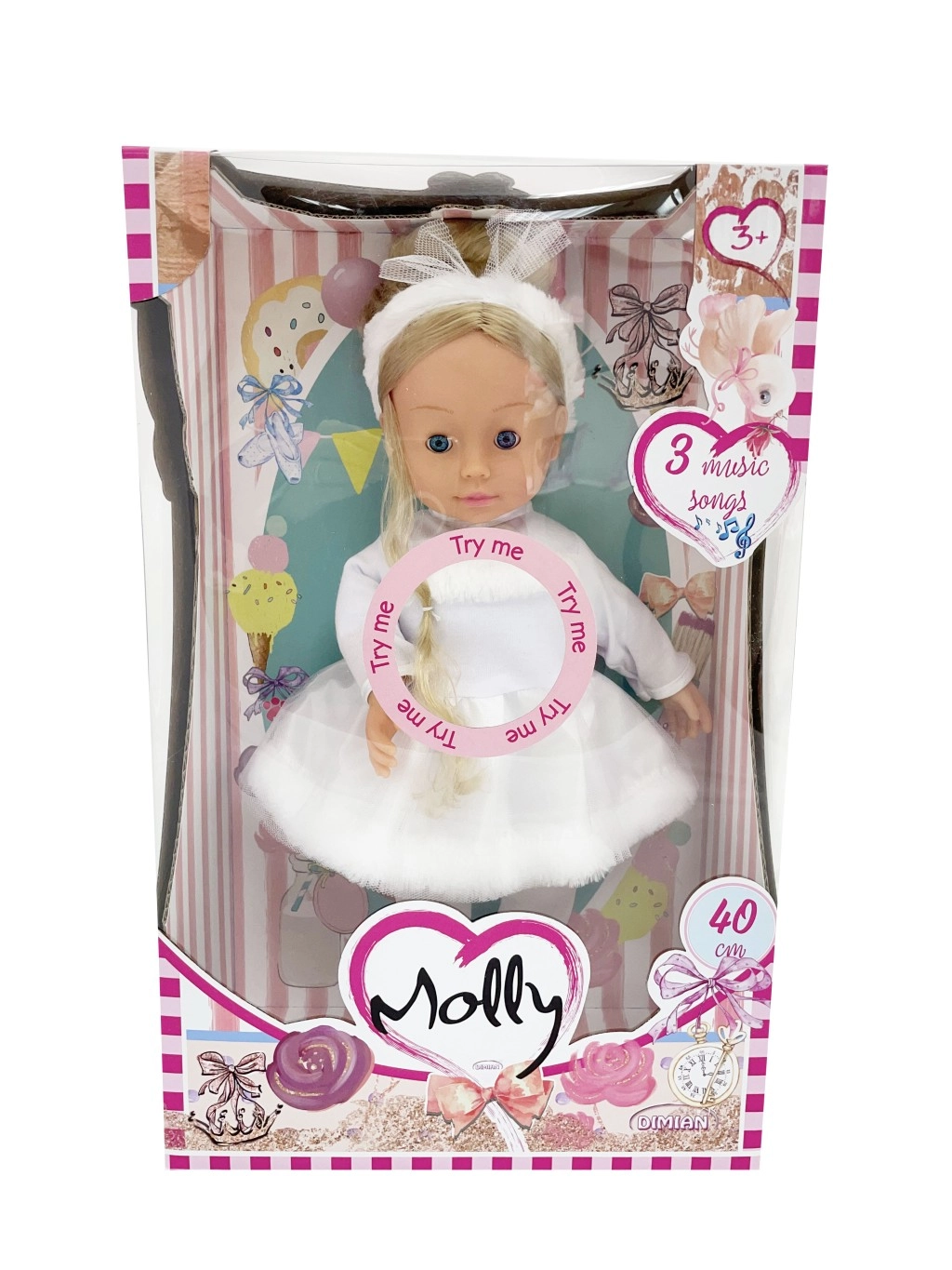 Mieloji lėlė Bambolina Molly balerina pradžiugins kiekvieną mažą šokio mylėtoją. Ji turi mirksinčias akis, ilgus plaukus ir dėvi gražią balerinės suknelę. Gali groti 3 daineles, o dėl 40 cm dydžio patogiai laikosi net ir mažesnėms rankytėms. Tinka nuo 3 metų, LR44 baterijos yra komplekte.
