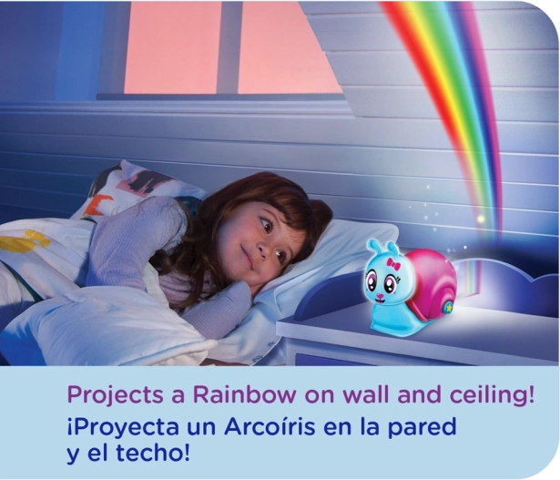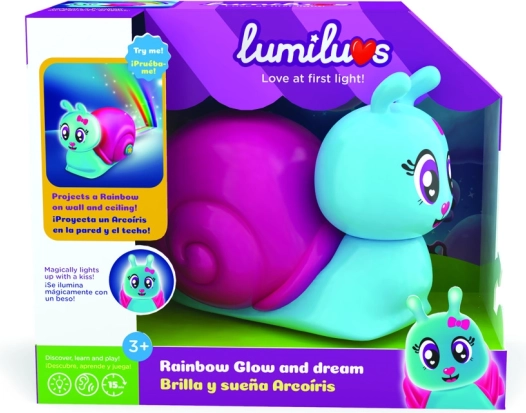 Šviesus ir draugiškas sraigė Lumiluvs yra idealus palydovas guldyti vaikus miegoti. Tereikia paspausti mygtuką ant jo kriauklelės ir ant sienų bei lubų sužibs vaivorykštė, paverčianti įprastą kambarį magiška vieta.