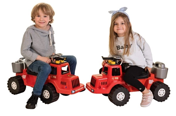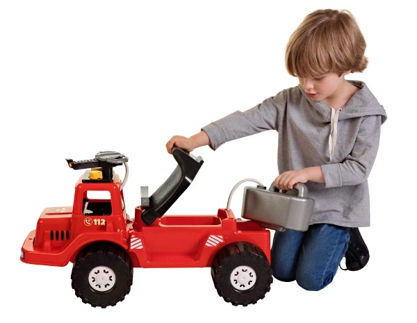 Dėl žemo svorio centro, plačių ratų ir ergonomiškos rankenos važiavimas stabilus ir patogus. Pasispiriamas žaislas padeda lavinti stambiąją motoriką, koordinaciją ir vaiko pasitikėjimą savimi. Realistinės detalės, numeris 112 ir „FIRE DEPARTMENT“ užrašai pabrėžia autentišką išvaizdą.