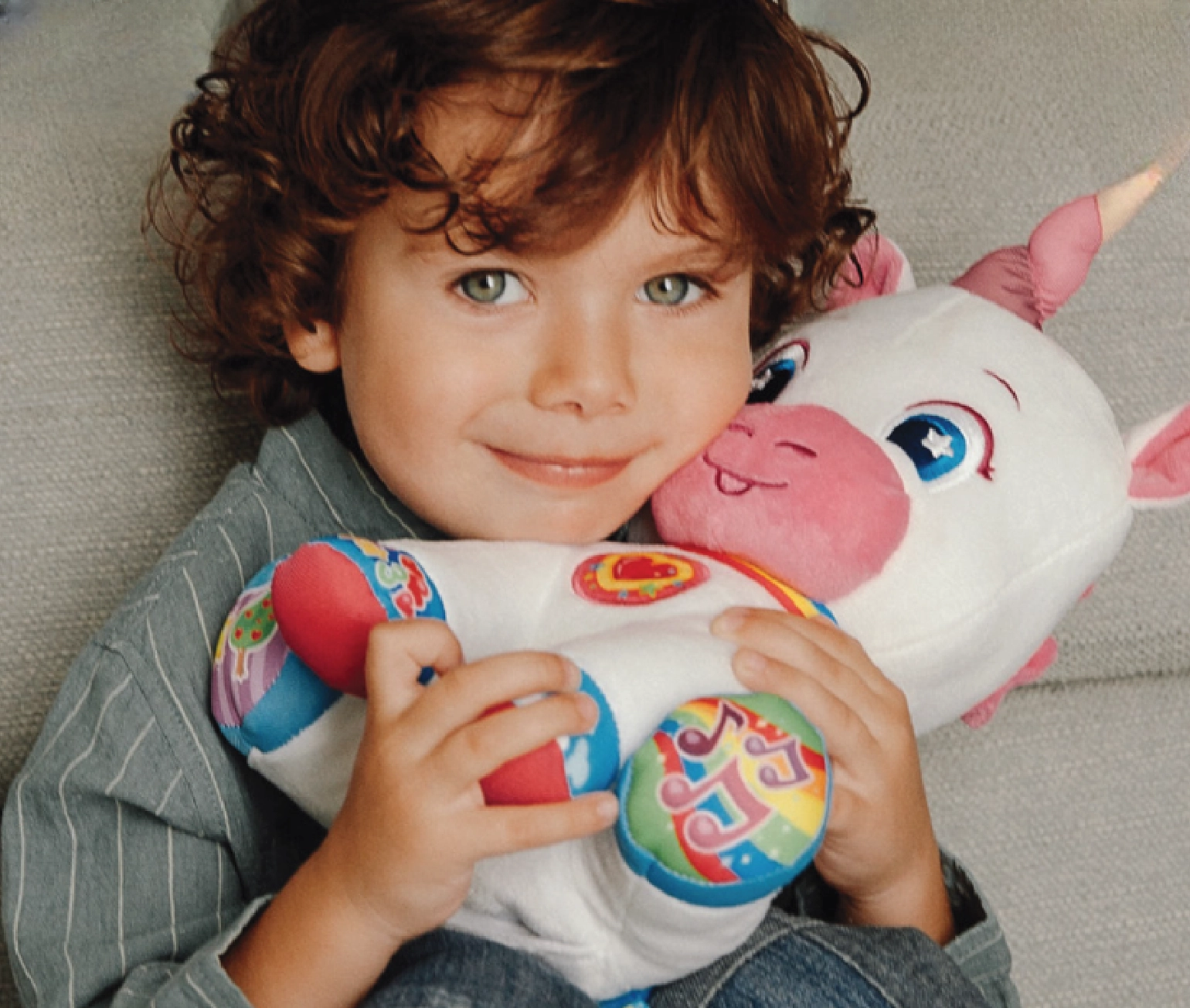 Šis švelnus interaktyvus vienaragis – idealus bičiulis pirmiesiems pasaulio atradimams. Vaikams patiks minkšti apkabinimai, švytintys skruostai ir ragas bei spalvoti mygtukai ant letenėlių, kurie, paspaudus, reaguoja linksmiais garsais, dainelėmis ir eilėraštukais. Žaislas kalba čekų kalba ir gali būti perjungtas į slovakų.
