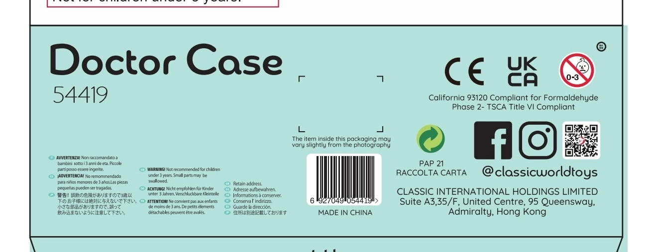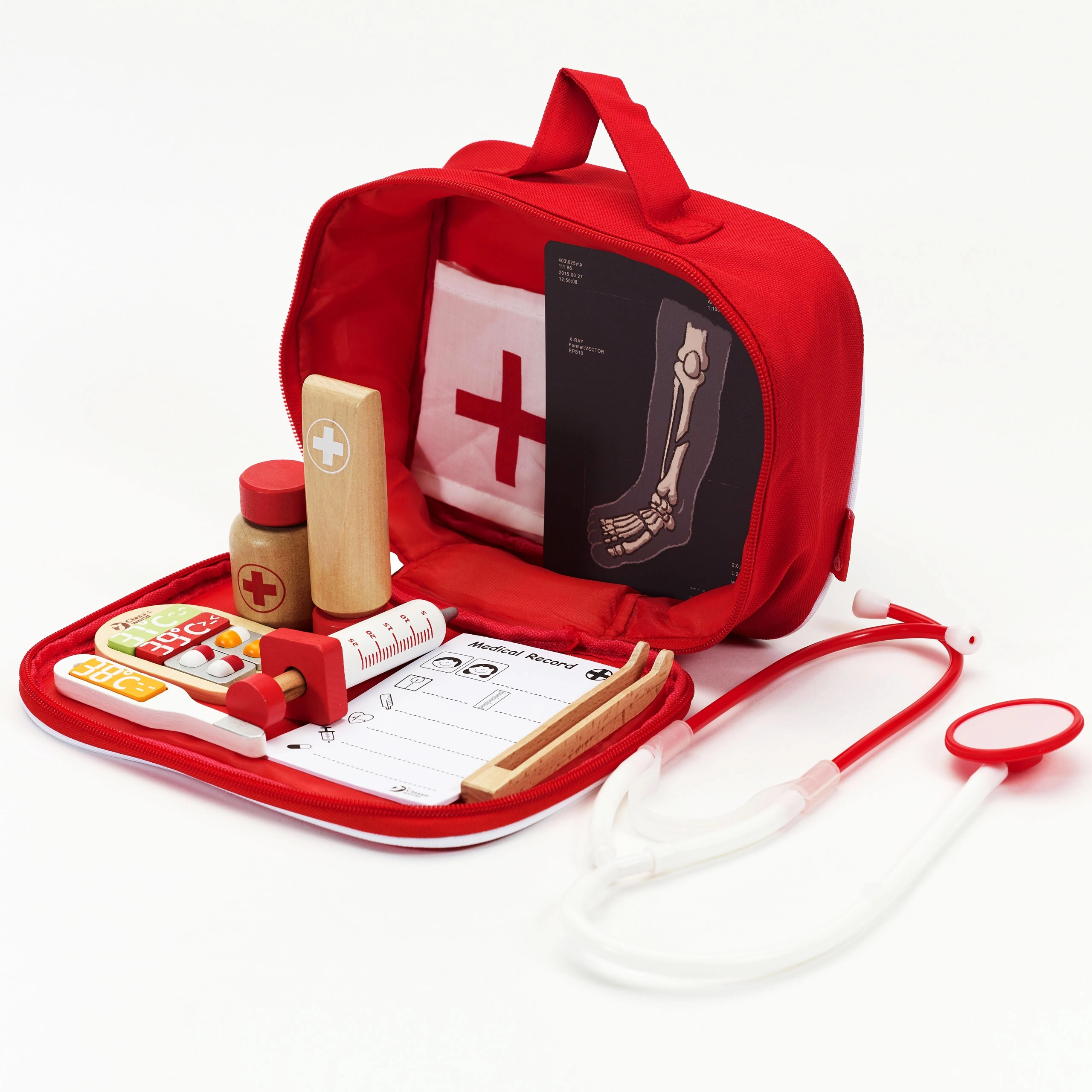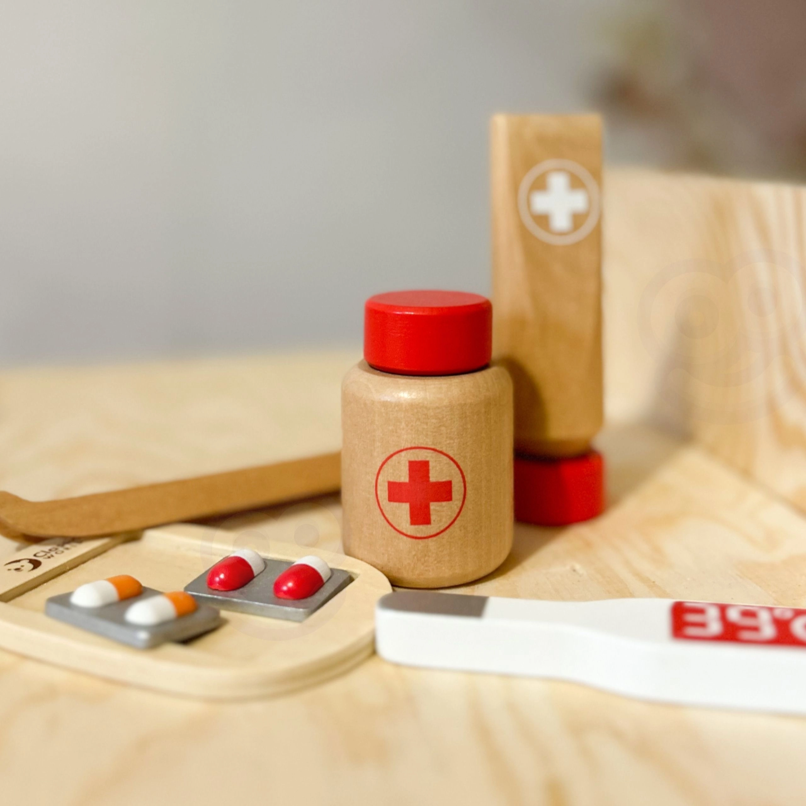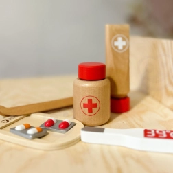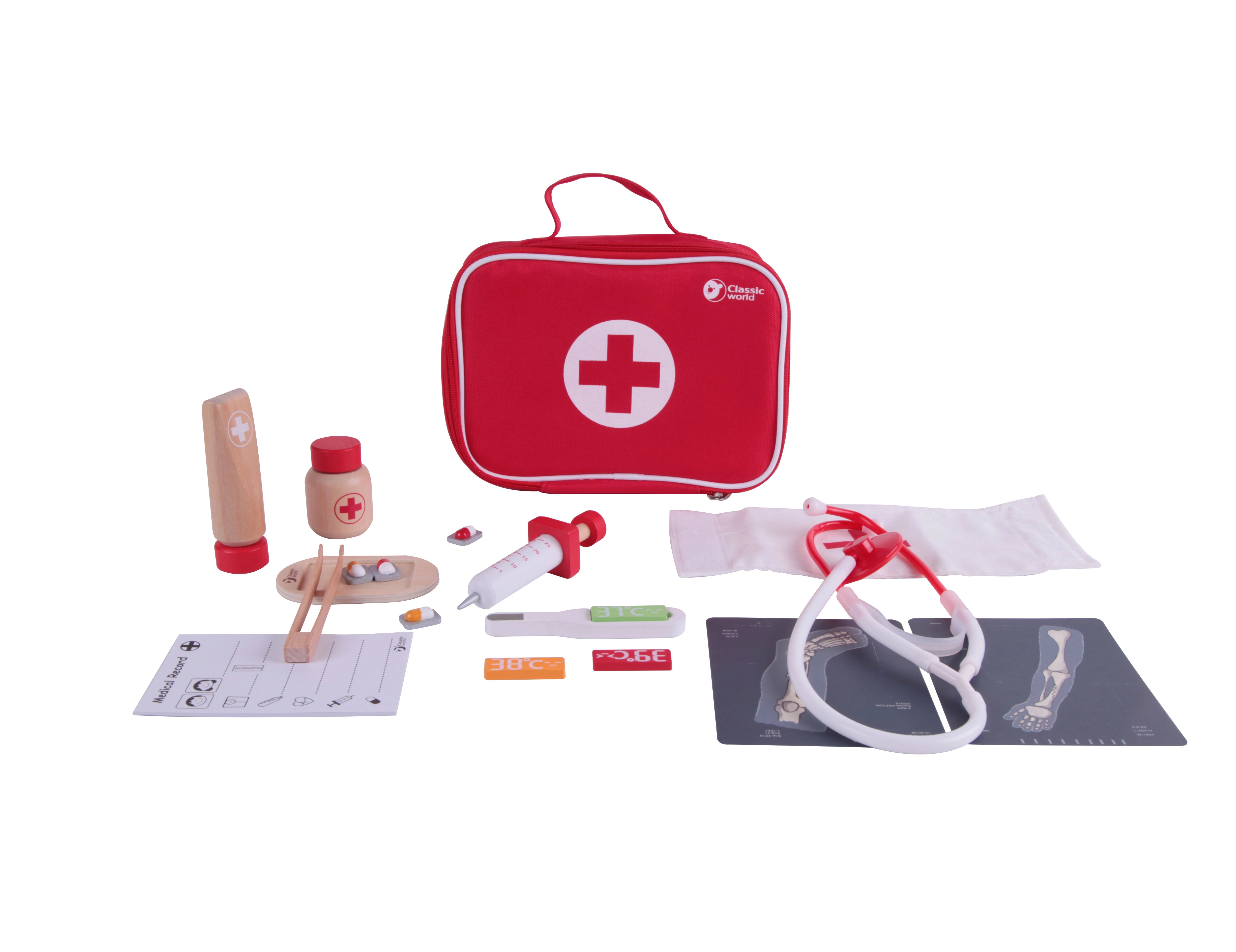 Rinkinys iš Classic World turi viską, ko mažajam gydytojui reikia žaidžiant gydytoją. Vaikai gali klausytis pacientų (pliušinių meškučių, lėlių) širdies plakimo su stetoskopu, „matuoti“ temperatūrą termometru, „leisti“ injekcijas ar duoti reikalingus vaistus. Gydytojo vaidmenų žaidimas – ne tik mėgstamas užsiėmimas, bet ir empatijos bei įsitraukimo pamoka, itin svarbi socialiniams santykiams. Šis rinkinys skatina vaizduotę ir moko spręsti problemas.