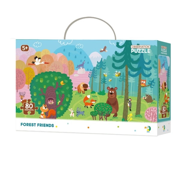 Šis gražus dėlionių rinkinys su miško draugų motyvu suteikia vaikams ne tik pramogą, bet ir mokymąsi. Sudėję paveikslą, jie gali žaisti interaktyvų žaidimą Rask ir ieškok, kurio metu ieško ir nustato įvairių miško gyvūnų vietas. Dėka ryškių spalvų ir aiškių formų, vaikai natūraliai mokosi atpažinti detales ir ryšius.