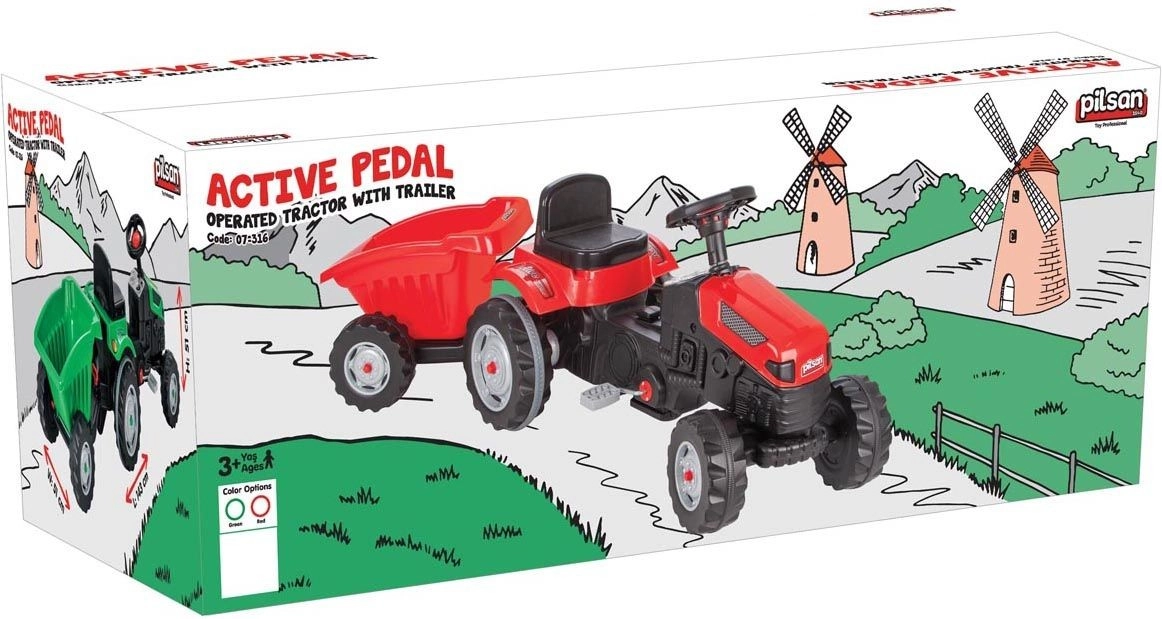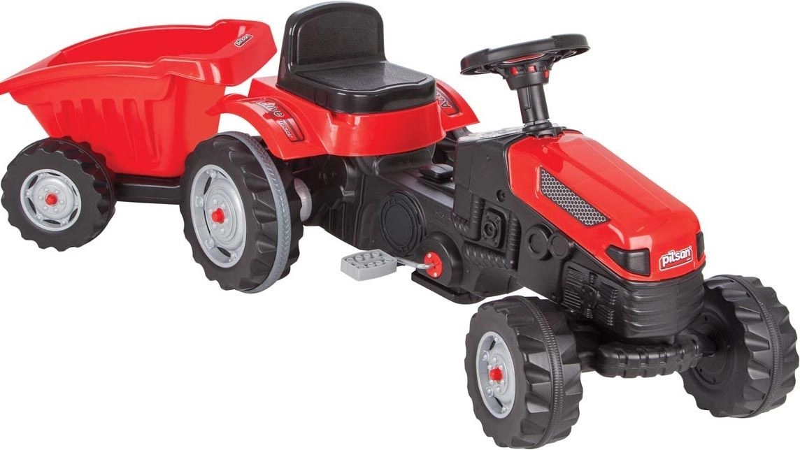 Pilsan minamas traktorius patrauklios raudonos spalvos suteikia vaikams autentišką vairavimo patirtį. Stabili konstrukcija, patogi sėdynė ir prijungiama priekaba paverčia šį žaislą puikiu palydovu sodui, žaidimų aikštelei ar kiemui. Dėl paprasto valdymo vairu vaikai mėgausis realistišku „vairavimu“ ir gausybe saugių pramogų.