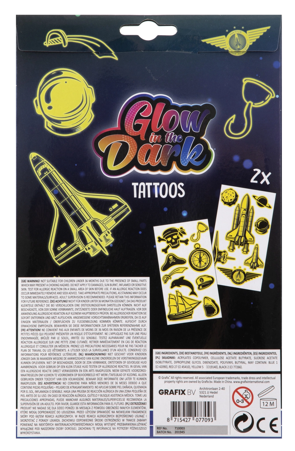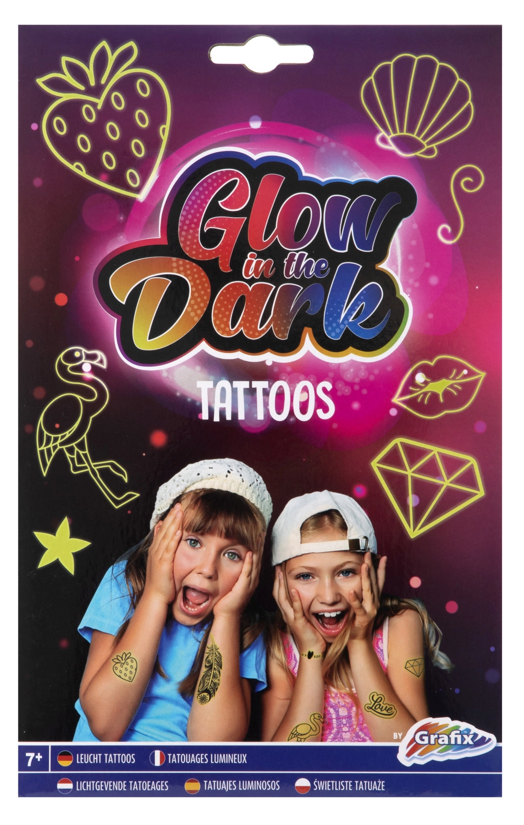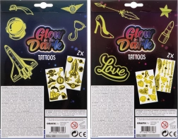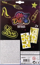 Šis šviečiančių tatuiruočių rinkinys idealiai tinka mergaitėms, norinčioms suteikti savo stiliui žavesio. Mėgaukitės įvairiais motyvais, esančiais pakuotėje, kurioje yra du tatuiruočių lapai. Tiesiog iškirpkite, uždėkite ant odos, sudrėkinkite kempinėle ir viskas! Naudojimas greitas ir smagus.