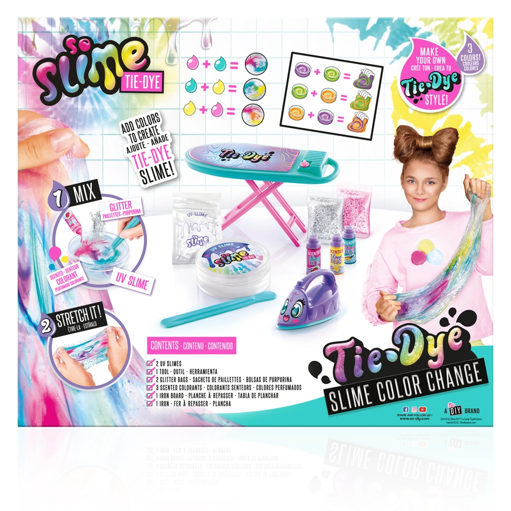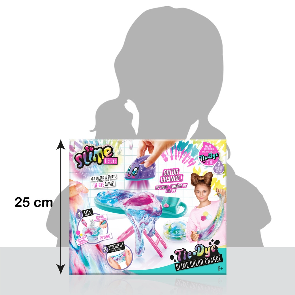 Patirkite kūrybos džiaugsmą su So Slime Tie-Dye rinkiniu vaivorykštiniam gleiviui. Šis rinkinys leidžia sukurti unikalų gleivį, kuris keičia spalvas naudojant UV šviesą. Rinkinyje yra: