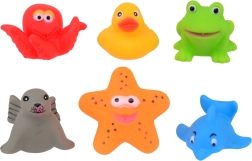 Padarykite vaikų maudynes dar smagesnes su vandens gyvūnėlių rinkiniu. Šiame rinkinyje yra šeši skirtingi gyvūnėliai: aštuonkojis, varlė, ančiukas, jūrų žvaigždė, ruonis ir delfinas. Kiekvienas gyvūnėlis kruopščiai sukurtas taip, kad suteiktų vaikams džiaugsmo ir žaismingumo kiekvienų maudynių metu.