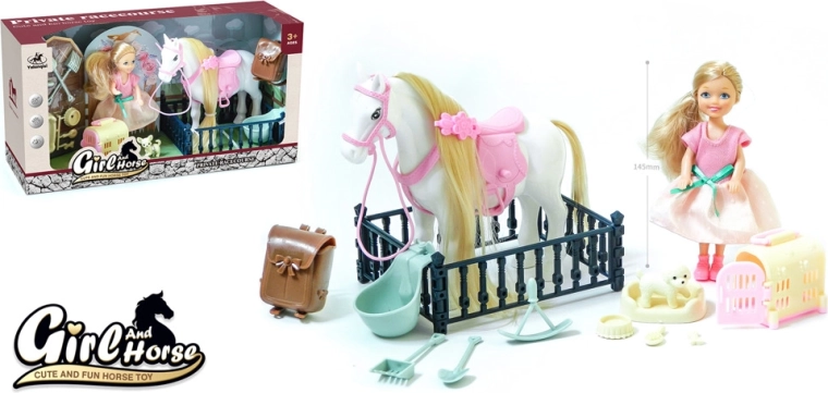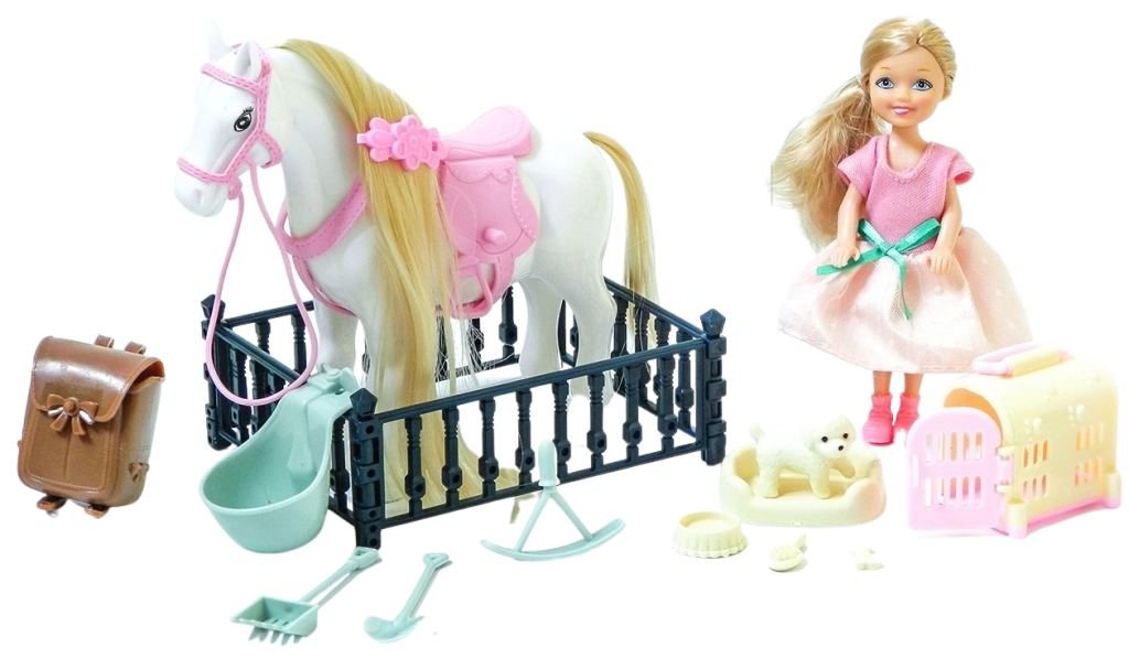 Atraskite kaimo žavesį su šiuo žaismingu rinkiniu mažiesiems gyvūnų mylėtojams. Arkliukas, lėlytė, šuniukas, aptvaras ir guolis kartu su kitais priedais skatina vaikus kūrybiškai pasakoti istorijas ir lavinti fantaziją. Tinka vaikams nuo 3 metų.