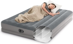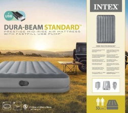 Mėgaukitės komfortu bet kur – šis dvivietis INTEX pripučiamas čiužinys puikiai tinka kaip laikina lova svečiams, kelionėms ar stovyklavimui. Patvarus PVC su maloniu veliūriniu paviršiumi neleidžia paklodei slysti ir didina komfortą. Dėl pažangios vidinės konstrukcijos čiužinys išlaiko formą, neįdumba ir suteikia stabilią stuburo atramą.
