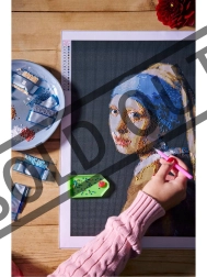 GRAFIX deimantinė tapyba suteikia raminančią kūrybinę patirtį. Naudodami aplikatorių ir vašką, klijuojate kristalėlį po kristalėlio ant pažymėtų vietų ant drobės su lipniu sluoksniu ir pamažu kuriate spindintį ikoninio motyvo Mergina su perlu paveikslą, kurio dydis 40 × 50 cm.