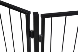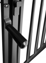 Įrengimas greitas ir patikimas dėl montavimo į sieną (tvirtinimo elementai pridedami). Varteliai tarpusavyje suderinami – galima praplėsti erdvę sujungus du komplektus ir taip sukurti didesnę apsauginę zoną. Patvari juoda apdaila tinka tiek moderniems, tiek klasikiniams interjerams.
