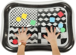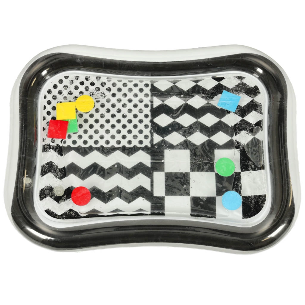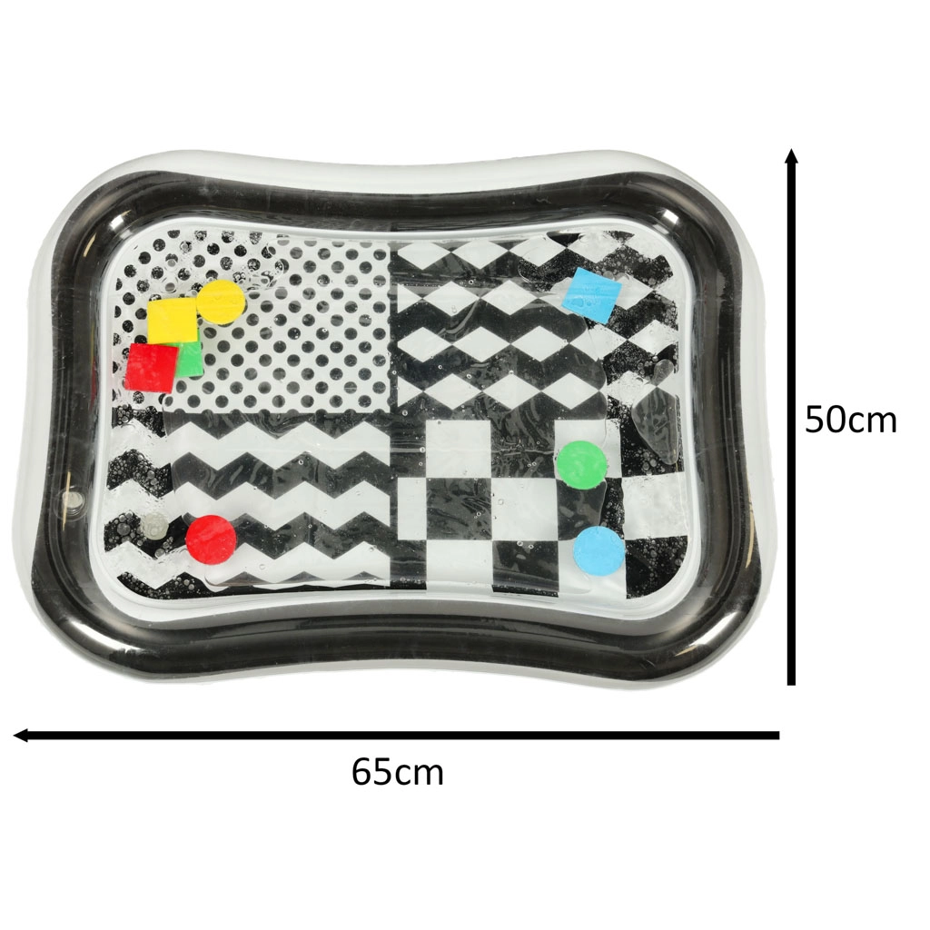 Kontrastinis vandens kilimėlis sukurtas mažų vaikų jutiminei stimuliacijai. Pagamintas iš aukštos kokybės medžiagos ir dekoruotas juodai baltu raštu, kilimėlis suteikia vizualinę stimuliaciją, o spalvotos formos skystyje užtikrina interaktyvų žaidimą. Vaikai gali stebėti vandenyje plūduriuojančias formas, kas motyvuoja juos žaisti ir susikaupti.