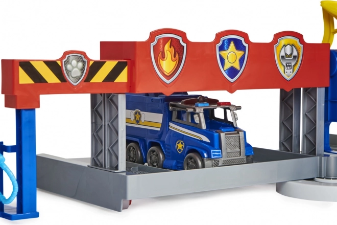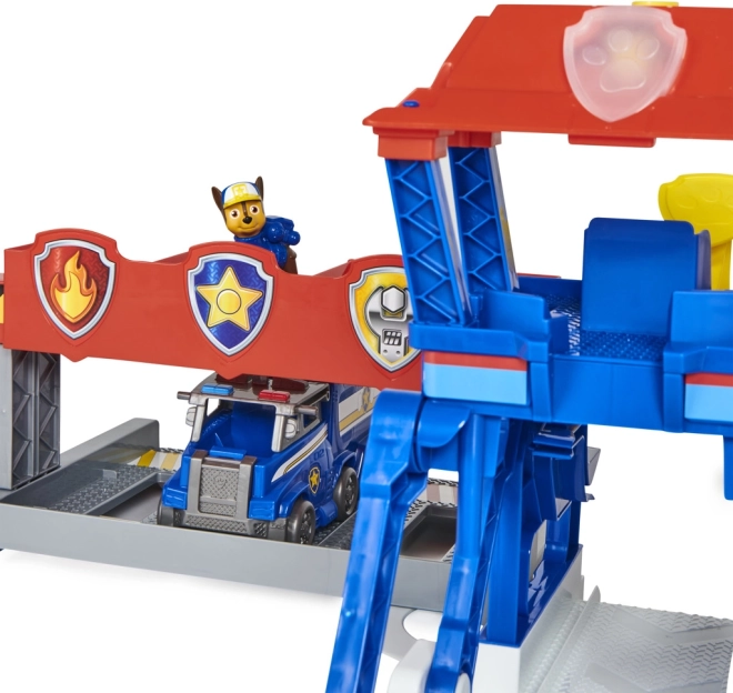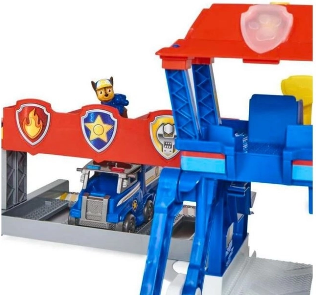 Pakėlus valdymo centrą, garažas persijungia į gelbėjimo režimą ir suteikia vietos visiems 6 Paw Patrol šuneliams.