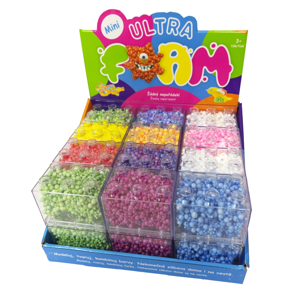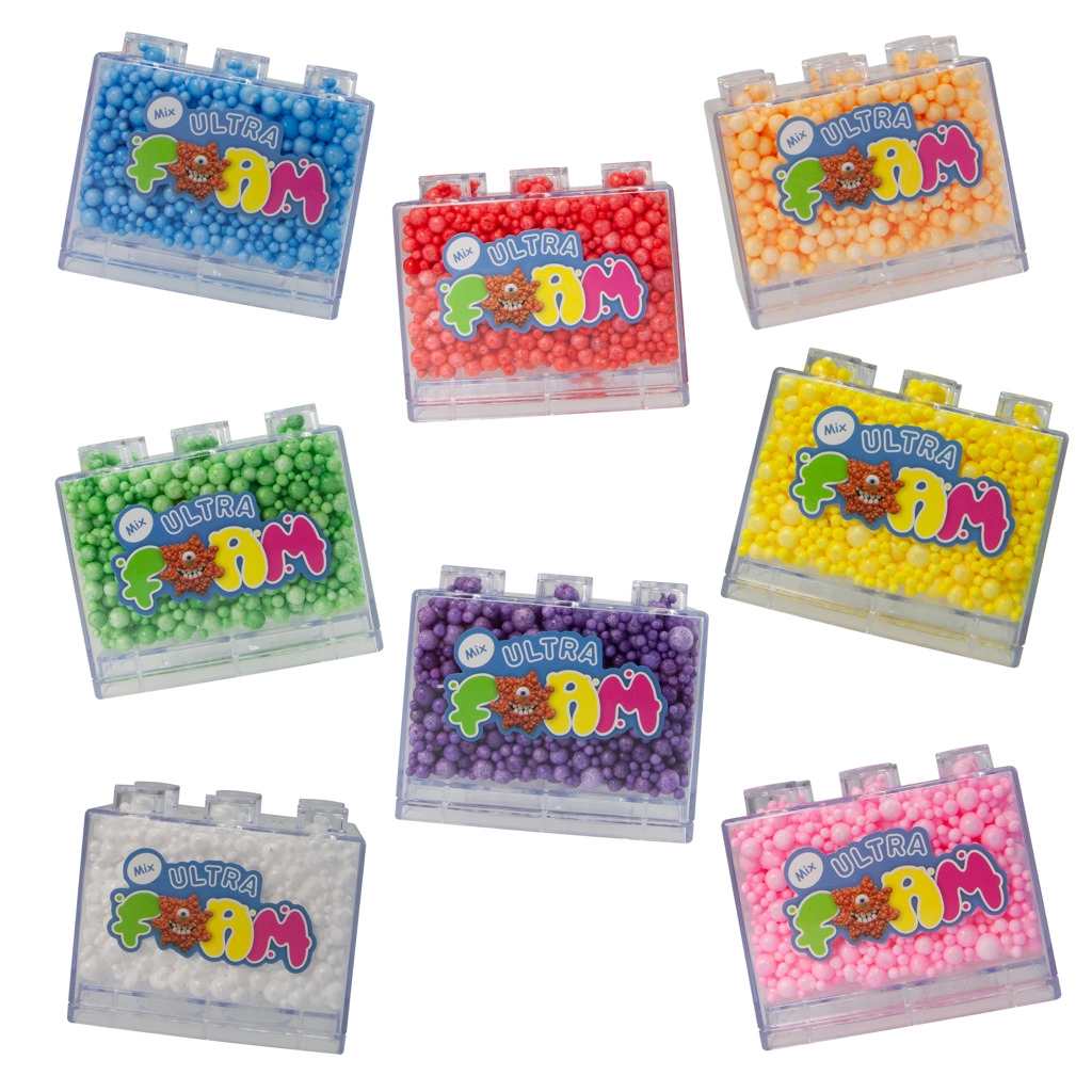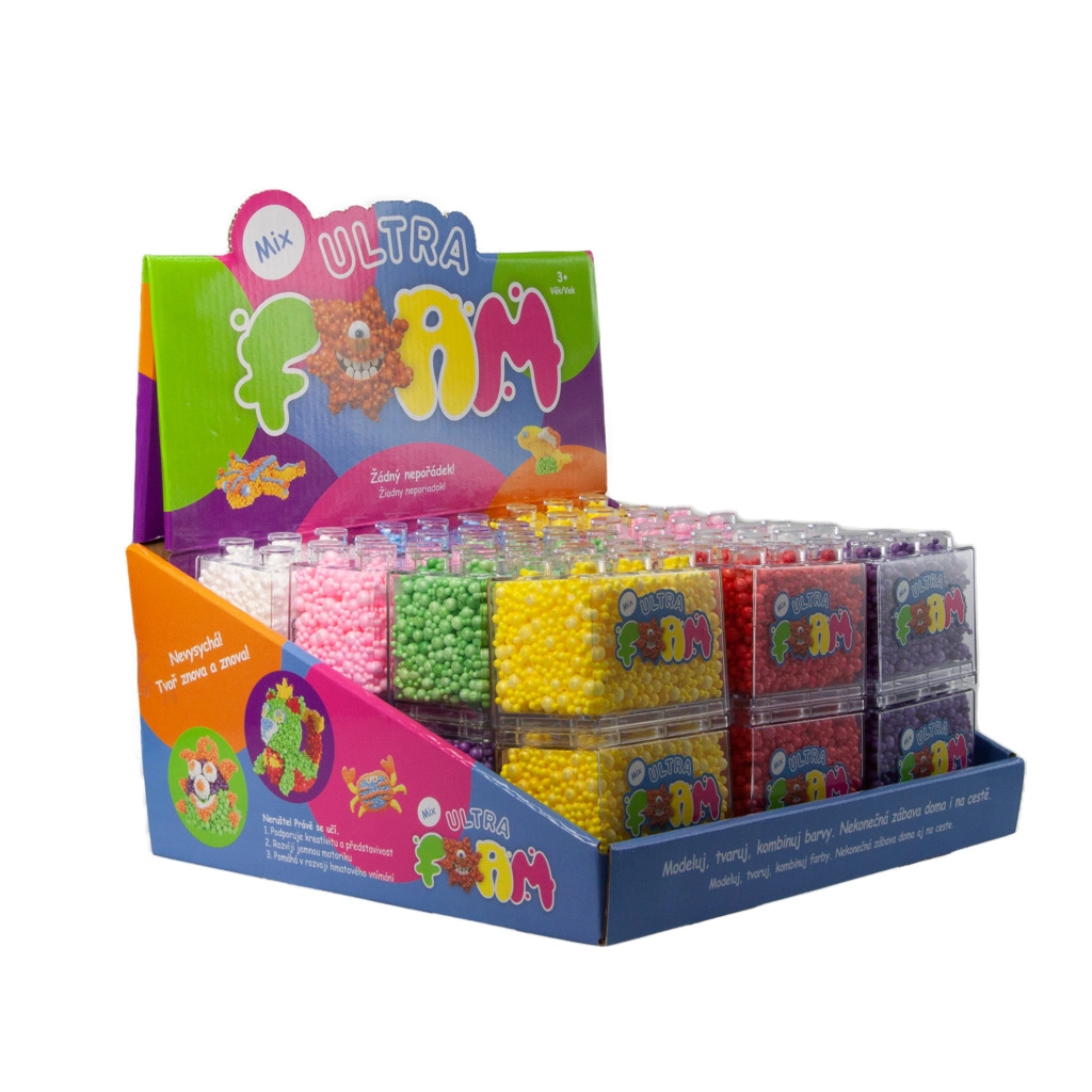 Kiekvienoje dėžutėje yra įvairiaspalvių putų granulės – puikiai tinka kūrybai ir linksmybėms.