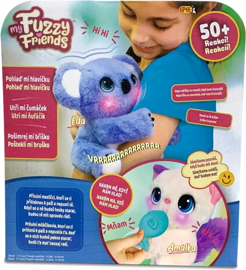 Atraskite interaktyvaus pliušinio koalos Edos gyvūnėlio iš My Fuzzy Friends serijos magiją. Šis mielas draugas į prisilietimus ir sąveiką reaguoja daugiau nei 50 skirtingų būdų, įskaitant garsus ir judesius. Eda turi specialius sąnarius, kurie leidžia jai apkabinti vaiko ranką ir prisiglausti. Galite koalą glostyti, kutenti, pamaitinti, nušluostyti nosį ir net padėti užmigti.