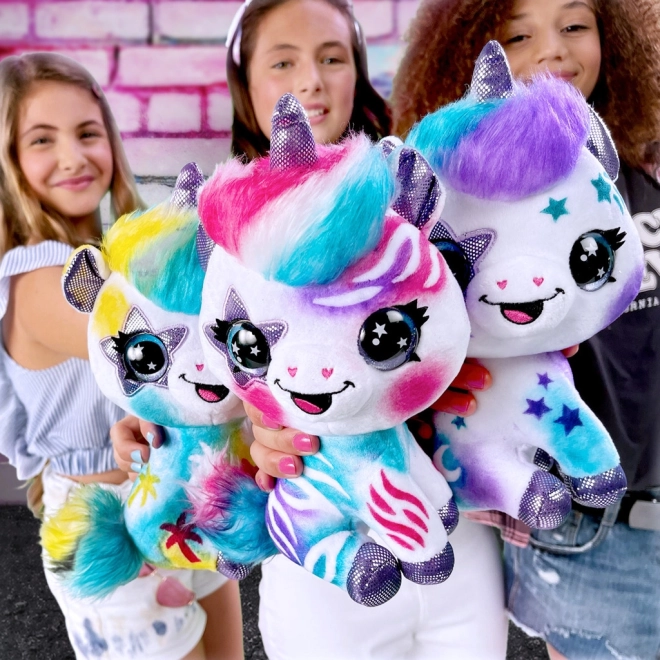 Lengvas spalvų purškimas ant pliušinio vienaragio naudojant šablonus arba laisva ranka. Puikiai tinka pradedantiesiems ir mažiesiems menininkams.