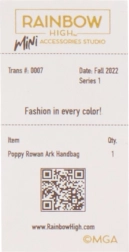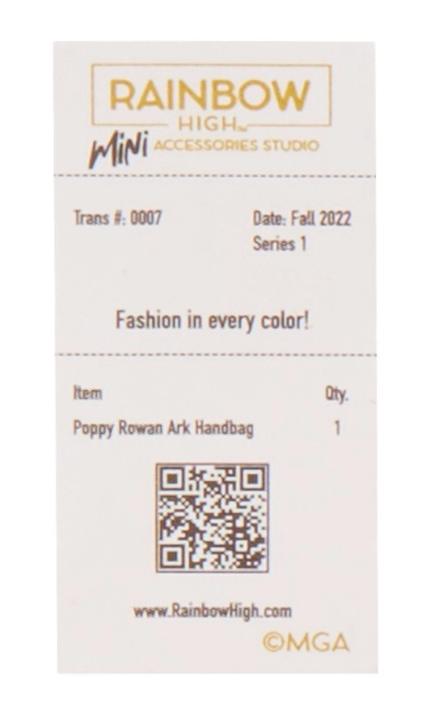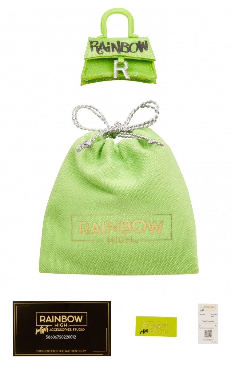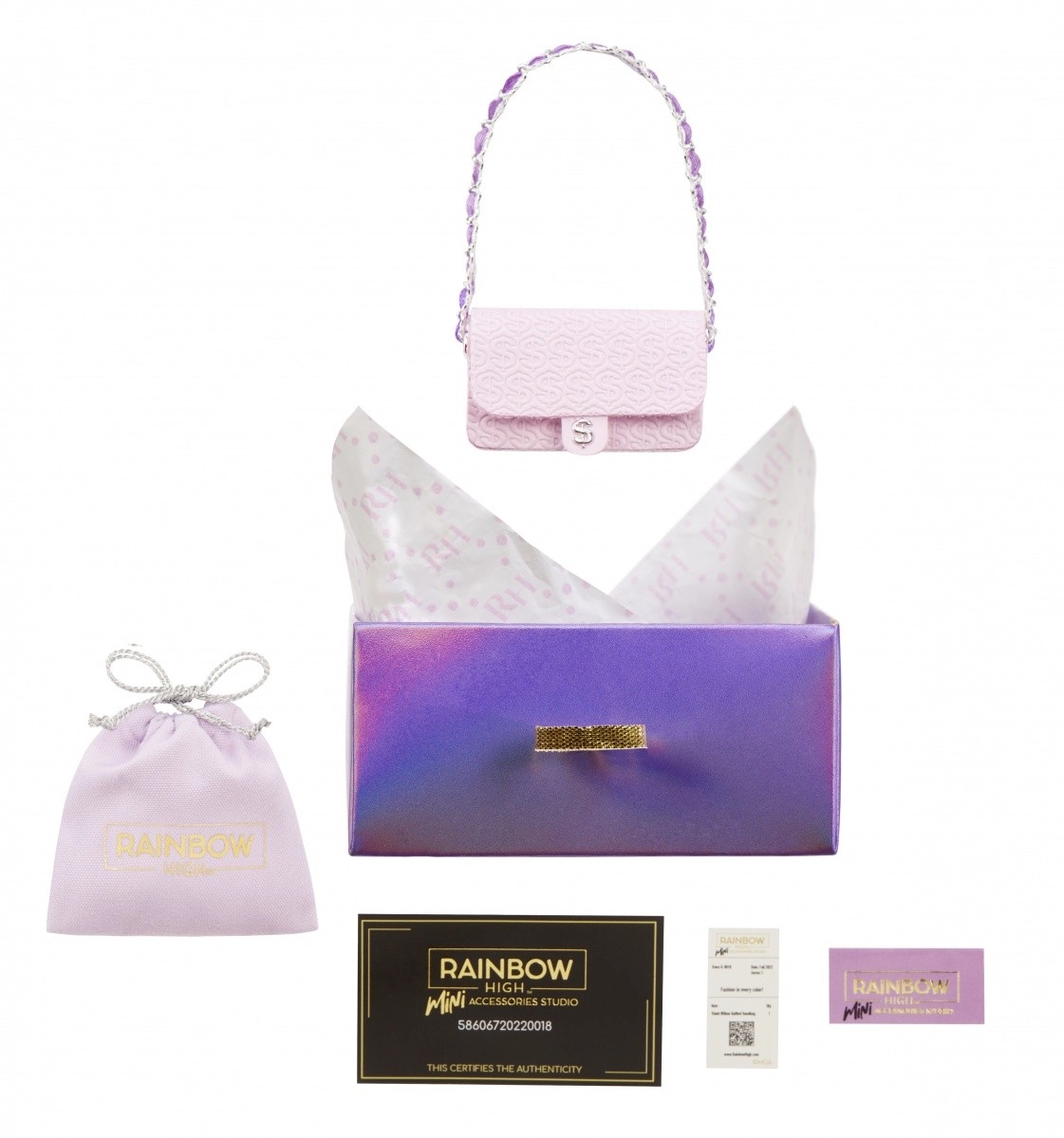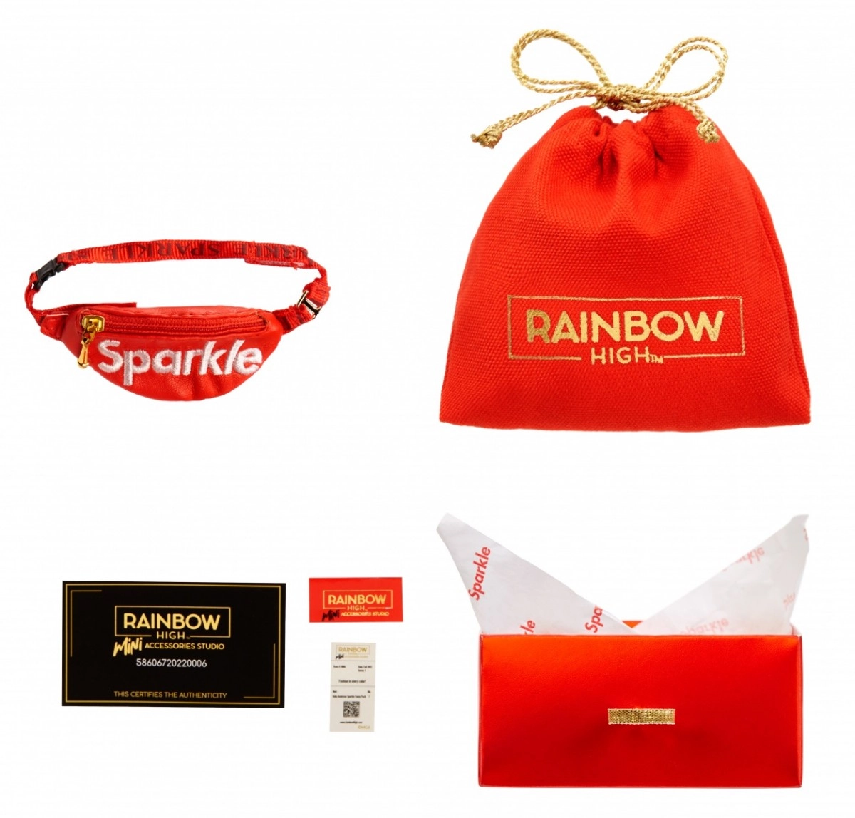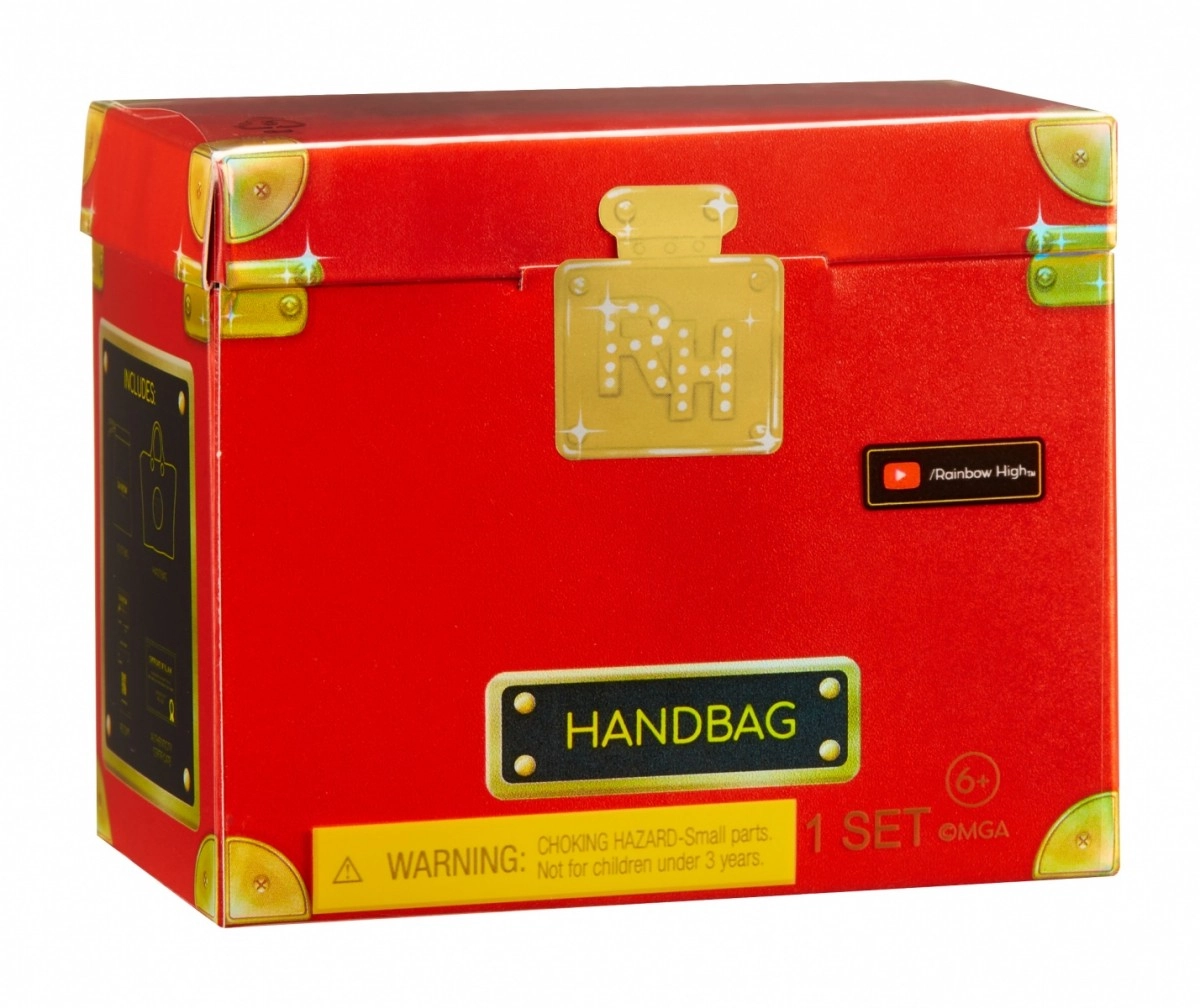 Kolekcijoje rasite 27 skirtingas rankines – nuo kasdienio iki vakarinio stiliaus. Galite rinktis shopper krepšius, kuprines, juosmens rankines arba vakarines delnines. Kiekviena rankinė supakuota į ikoninį Rainbow High lagaminėlį, kuriame yra dulkių maišelis, popierinė servetėlė, lipdukas ir net atspausdintas kvitas su atitinkamu kvito dėklu.
