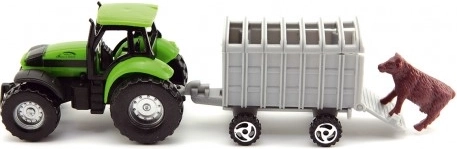 Praturtinkite savo žemės ūkio technikos kolekciją šiuo plastikiniu traktoriaus modeliu su priekaba. Tinka nuo 3 metų.