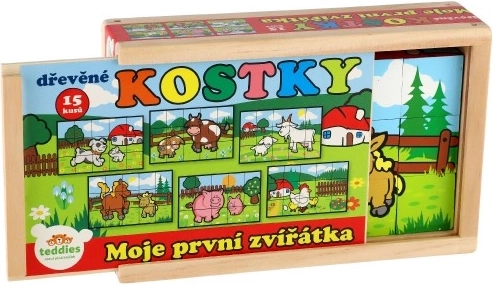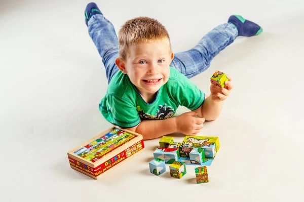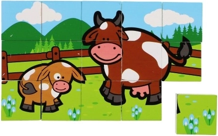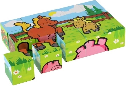 Medinės kaladėlės su spalvingais įvairių naminių gyvūnėlių paveikslėliais yra puiki priemonė vaikų raidai. Teisingai sudėjus, pasirodo vienas iš šešių paveikslėlių, kas skatina mažiausiųjų loginį mąstymą ir vaizduotę. Statydami ir griaudami bokštelius, vaikai perpranta pusiausvyros principą bei pagrindinius priežasties ir pasekmės dėsnius.