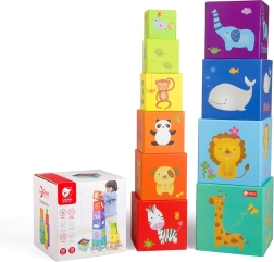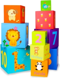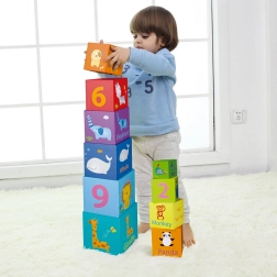 Šiuose spalvinguose blokuose yra skaičiai, gyvūnai ir angliški žodžiai, todėl jie padeda mokytis ir lavinti kognityvinius gebėjimus.