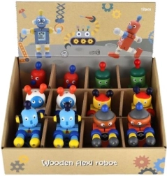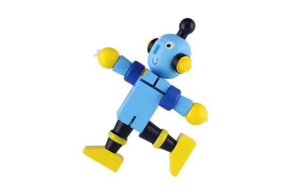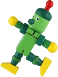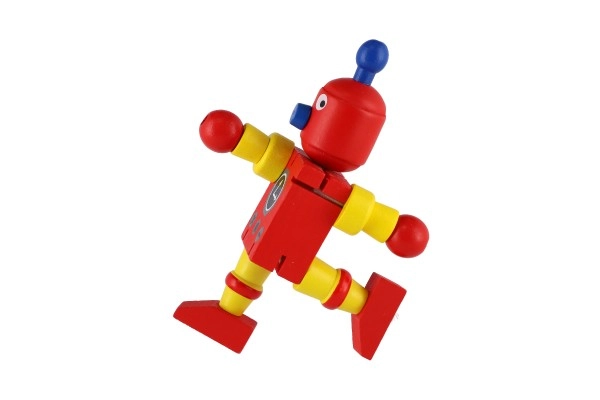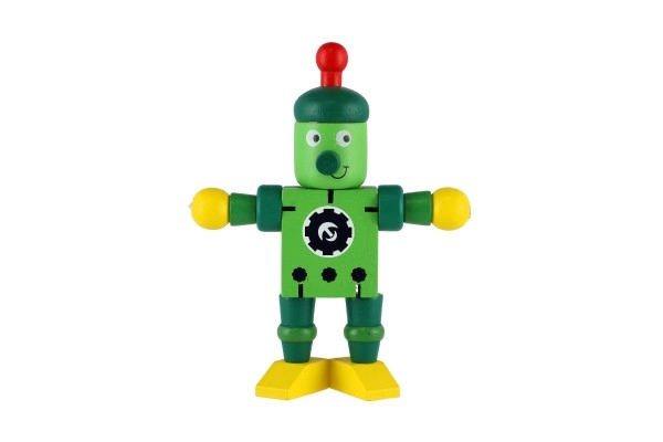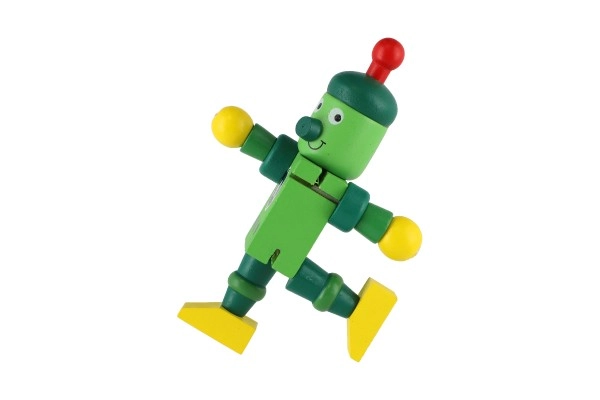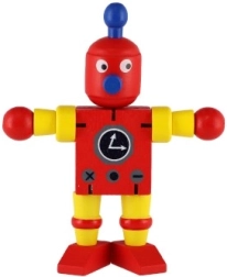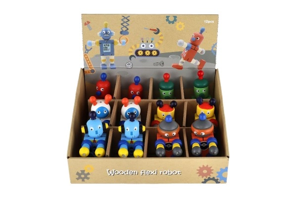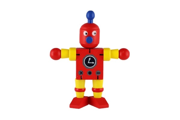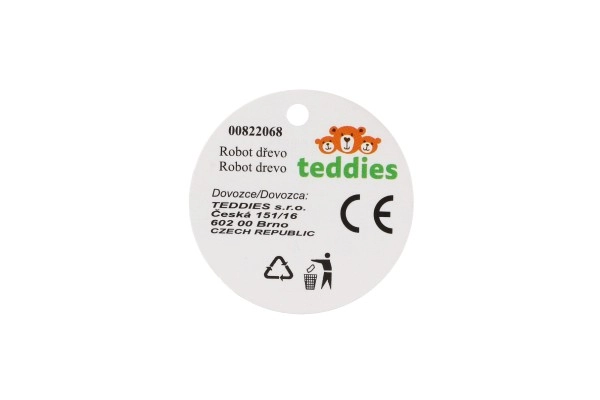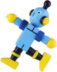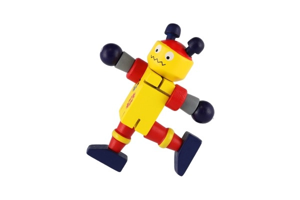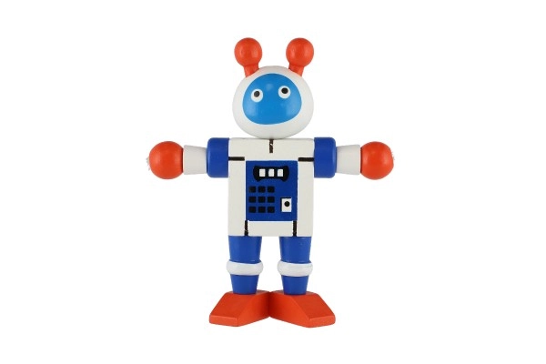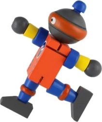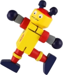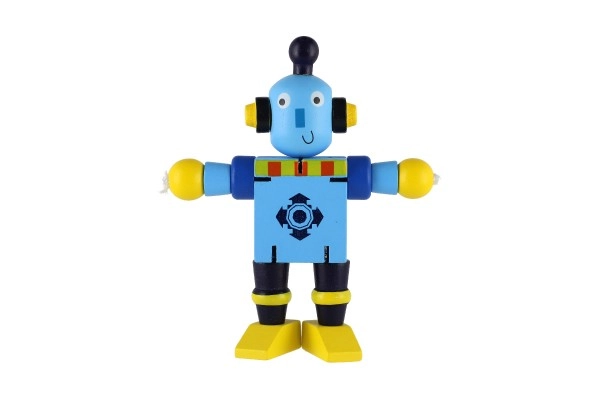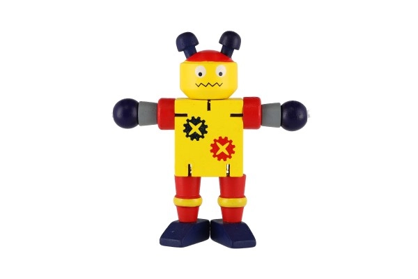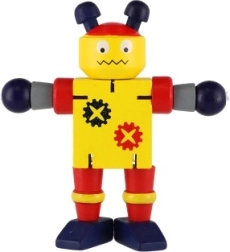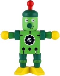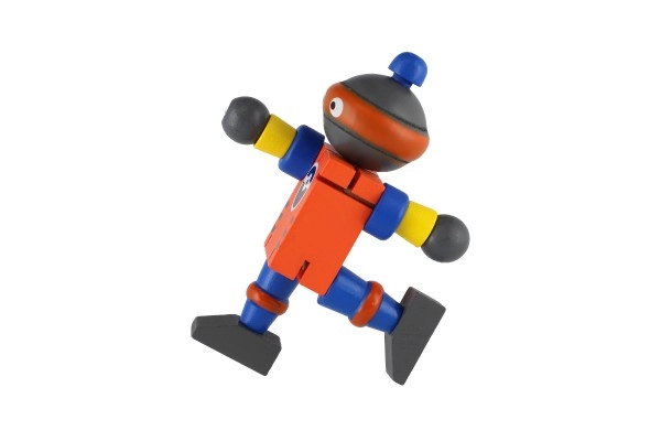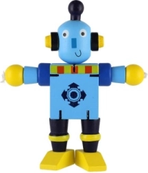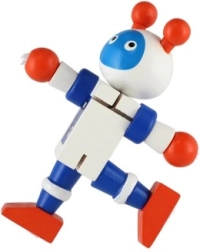 Žavus medinis 12 cm robotas pradžiugins kiekvieną mažą tyrinėtoją. Dėl elastingų gumelių jis turi judančias galūnes ir galvą, todėl vaikai gali jį lengvai pasodinti, pastatyti ar įvairiai surežisuoti. Žaislas lavina smulkiąją motoriką, kūrybiškumą ir vaizduotę. Tinka nuo 18 mėnesių.