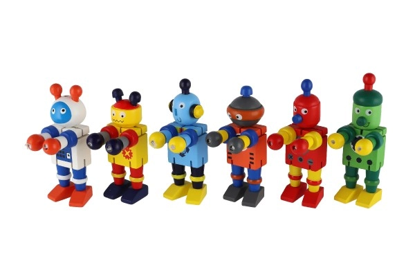Šie spalvingi mediniai robotai idealiai tinka pirmiesiems statybiniams ir vaidmenų žaidimams. Dėl guminių sujungimų jie lengvai lankstosi, išlaiko pozas ir skatina vaikus kurti kūrybingas istorijas. Patvarus medis ir glotnūs kraštai užtikrina saugų ir malonų naudojimą net patiems mažiausiems.