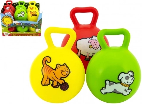 Katinas, šuniukas ar aviūtė ant spalvingų kamuoliukų patraukia dėmesį ir padeda lavinti regimąjį suvokimą.
