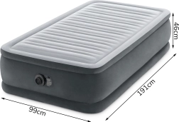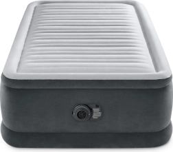 Pripučiamoji lova Intex Deluxe yra puikus pasirinkimas svečiams, nuomai ar atostogoms. Paaukštinta 46 cm konstrukcija palengvina atsikėlimą, o minkštas, flokkuotas paviršius užtikrina malonų prisilietimą ir patikimą paklodės laikymą. Vidinės Fiber-Tech sutvirtinimo skaidulos iš patvarių poliesterinių pluoštų išlaiko čiužinį tvirtą ir formos nekeičiančią, o Dura-Beam sistema tolygiai paskirsto svorį ir padeda išlaikyti taisyklingą stuburo išlygiavimą.